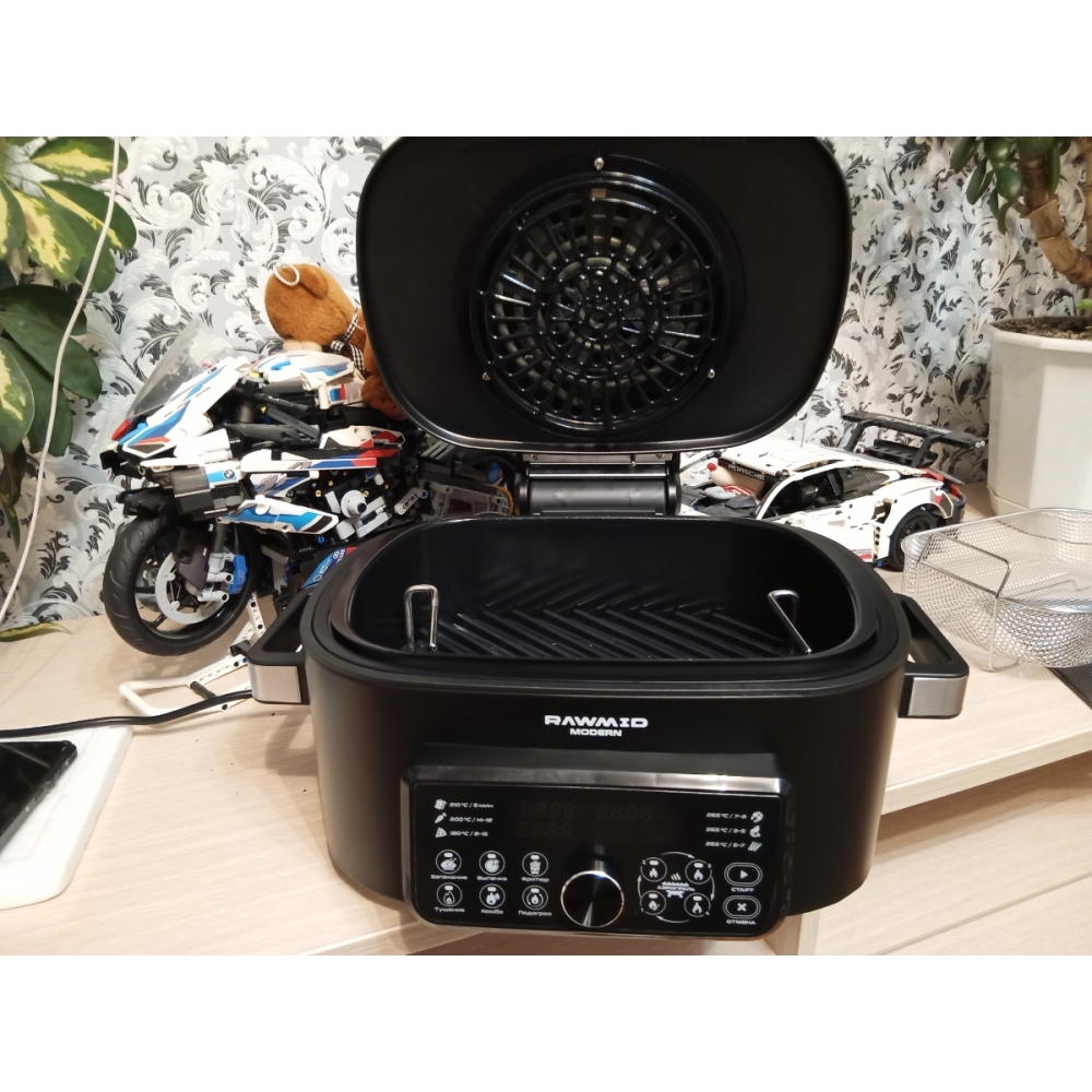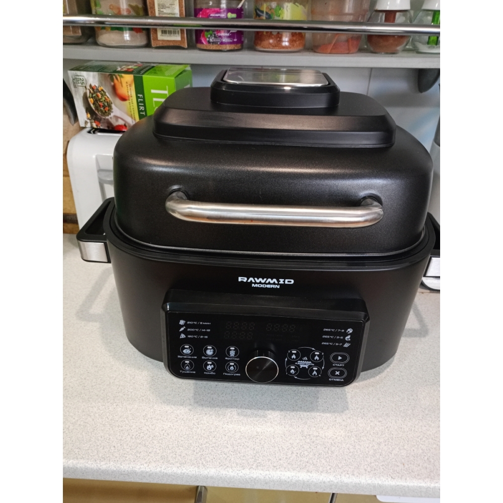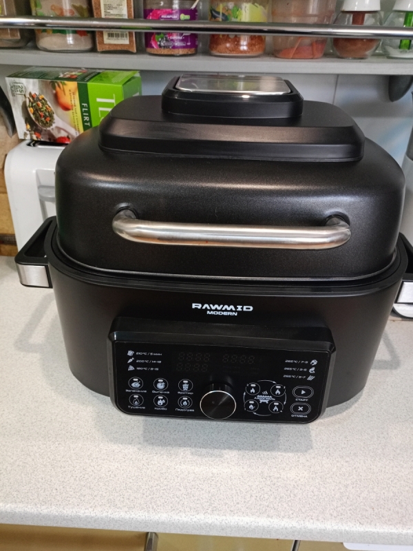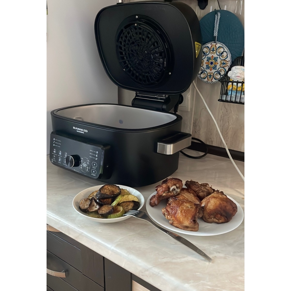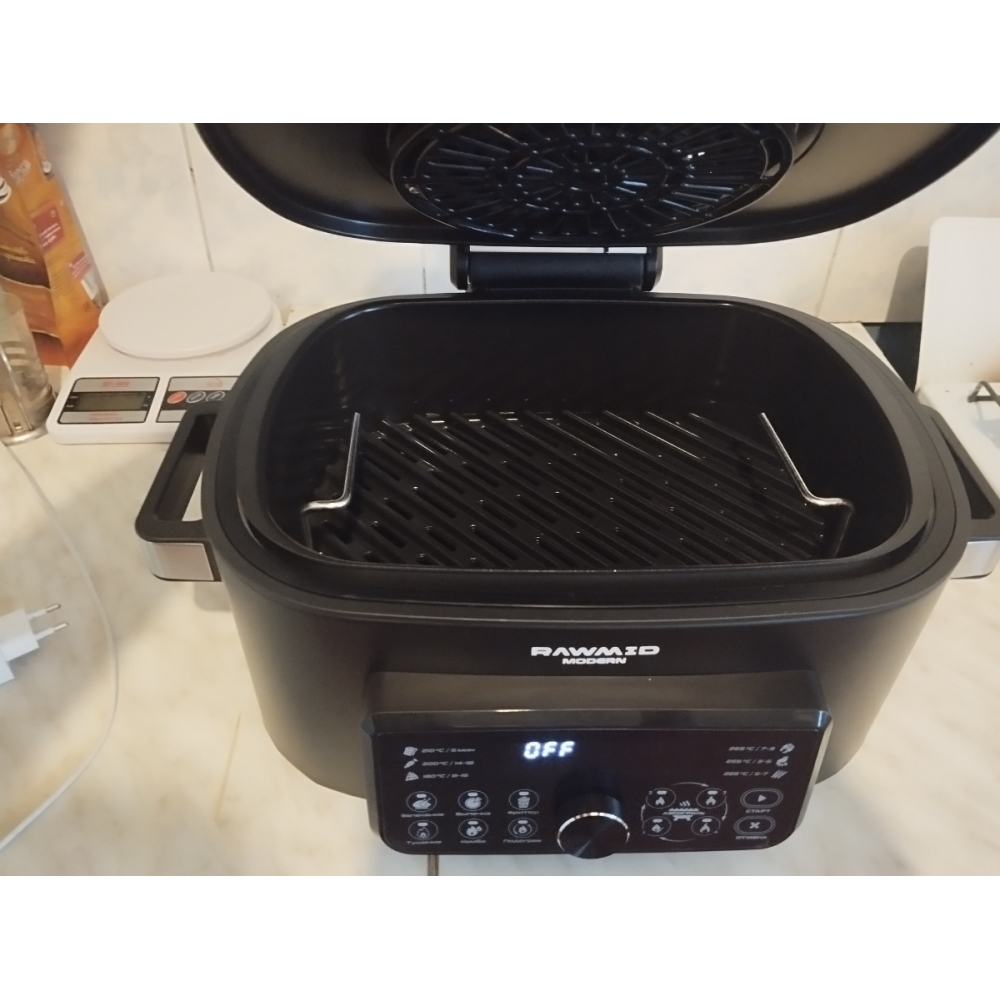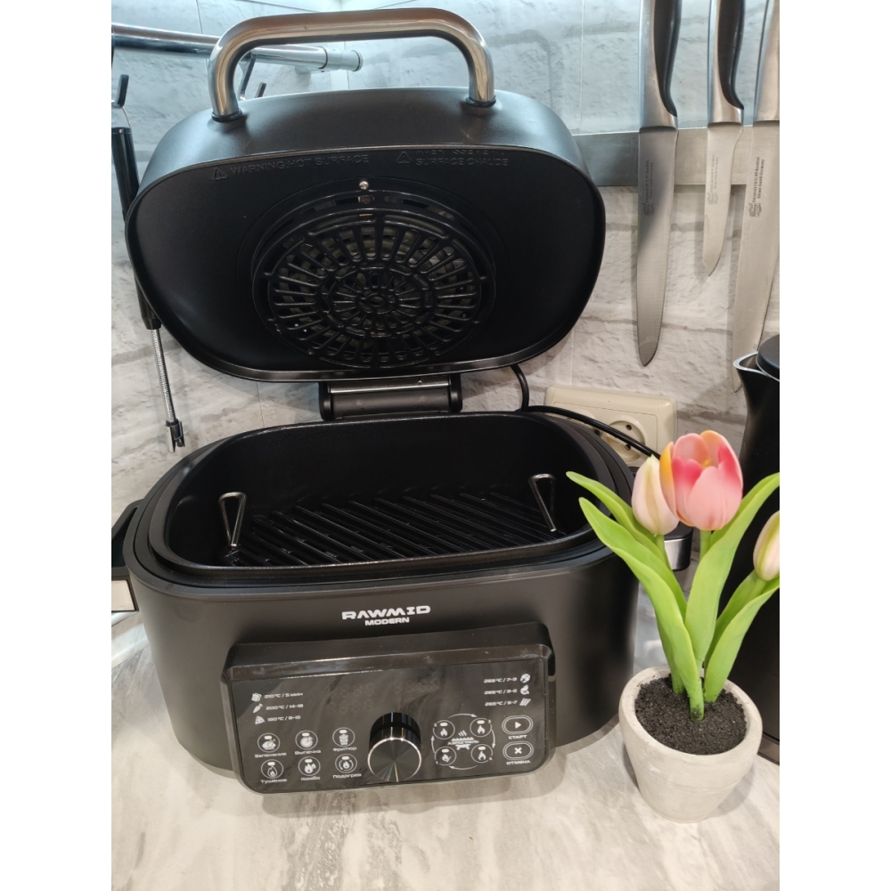 Если в обычном контактном гриле можно запекать продукты только определённой толщины, то в аэрогриле RAWMID Modern RMA-04 можно готовить всё что угодно. Благодаря объёмной вместительной ёмкости аэрогриля, в нём можно одновременно готовить мясной стейк и тушёные овощи, печь пирожки и запекать рыбу. А можно вообще запечь целую курицу.