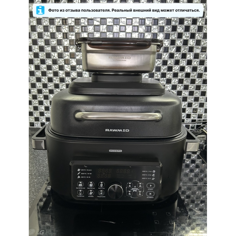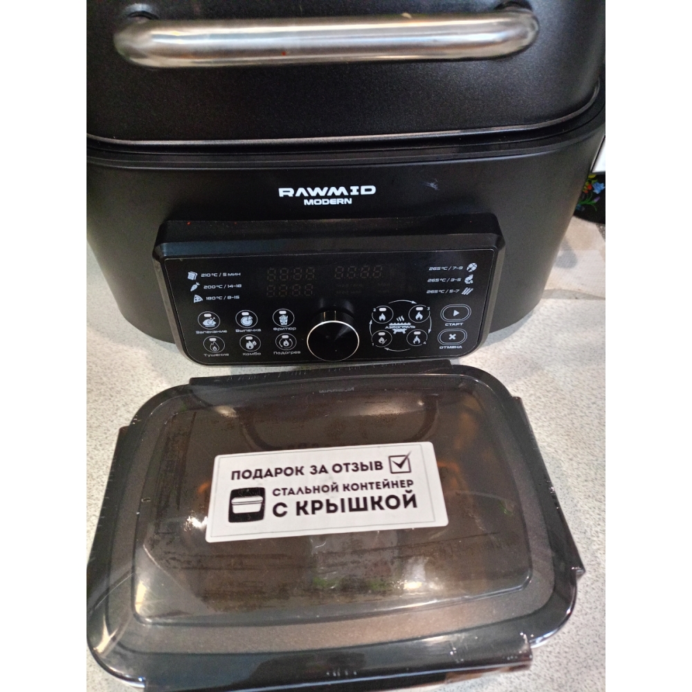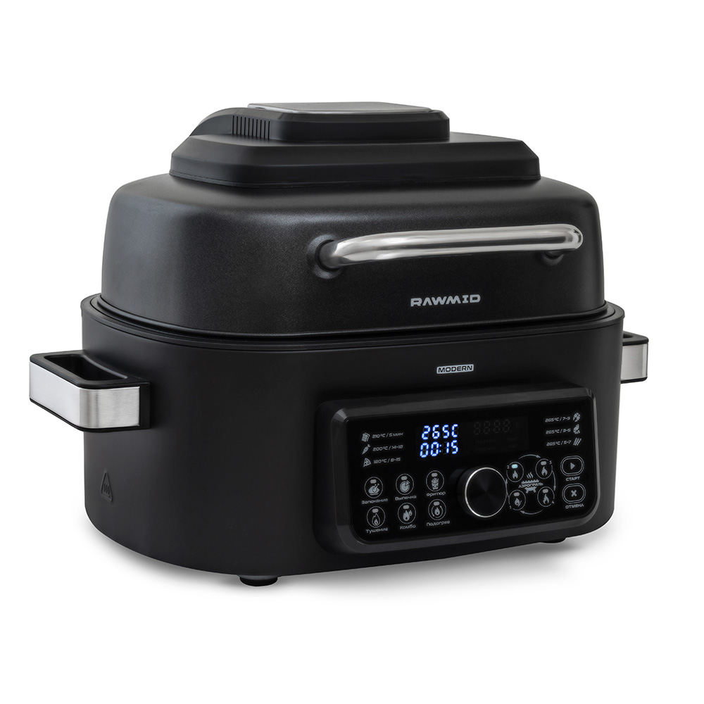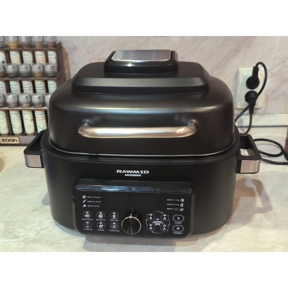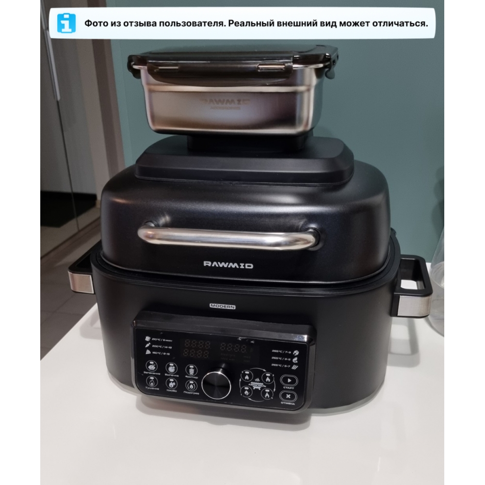 Если в обычном контактном гриле можно запекать продукты только определённой толщины, то в аэрогриле RAWMID Modern RMA-04 можно готовить всё что угодно. Благодаря объёмной вместительной ёмкости аэрогриля, в нём можно одновременно готовить мясной стейк и тушёные овощи, печь пирожки и запекать рыбу. А можно вообще запечь целую курицу.