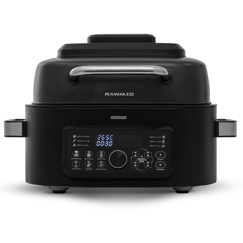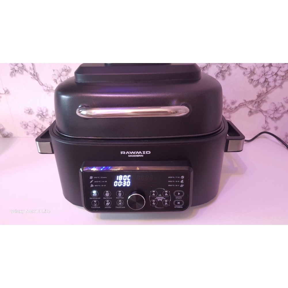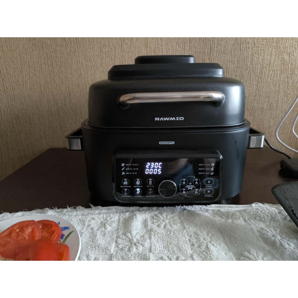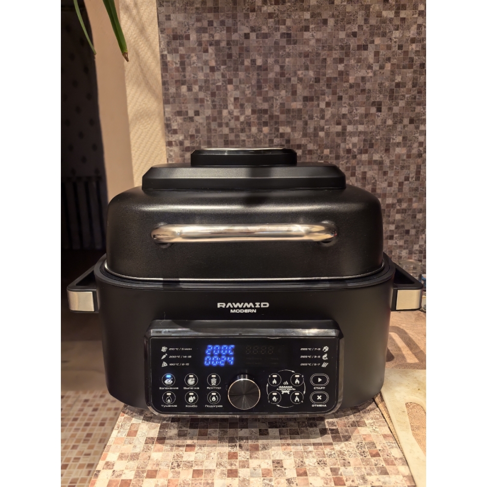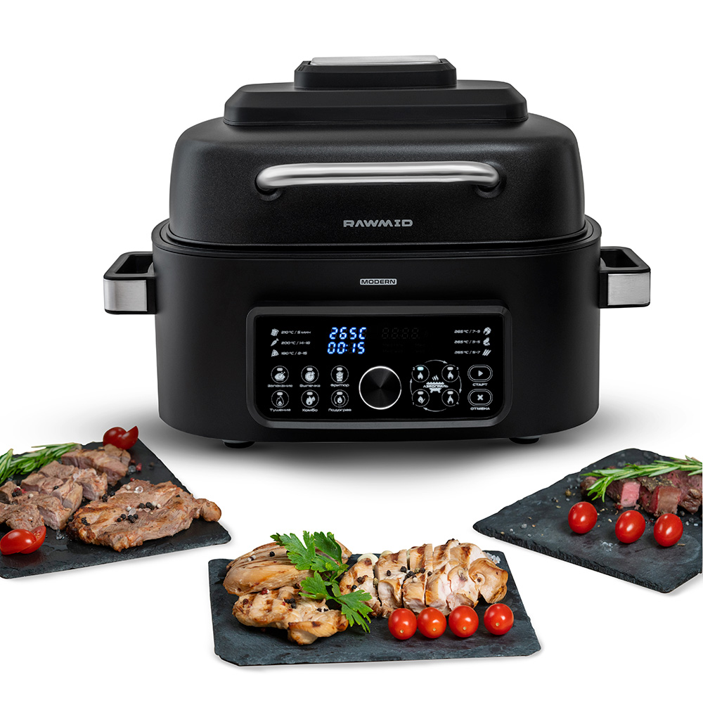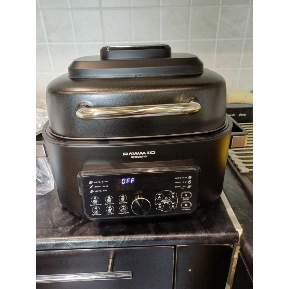 Если в обычном контактном гриле можно запекать продукты только определённой толщины, то в аэрогриле RAWMID Modern RMA-04 можно готовить всё что угодно. Благодаря объёмной вместительной ёмкости аэрогриля, в нём можно одновременно готовить мясной стейк и тушёные овощи, печь пирожки и запекать рыбу. А можно вообще запечь целую курицу.