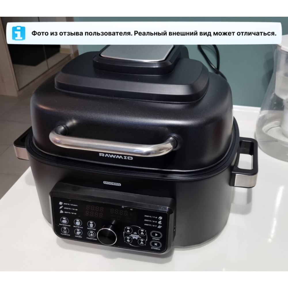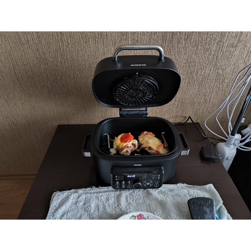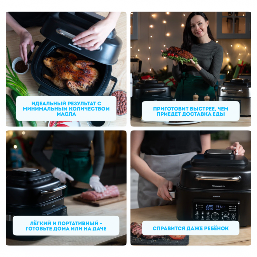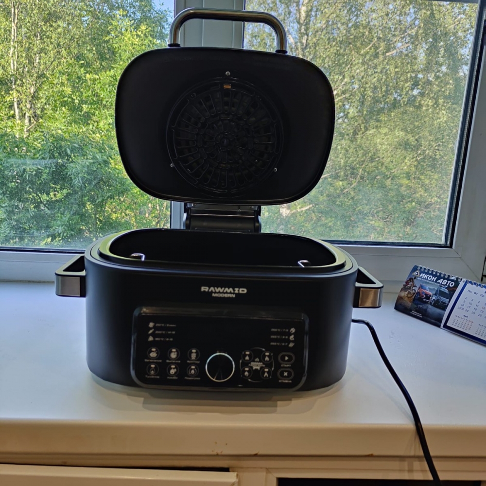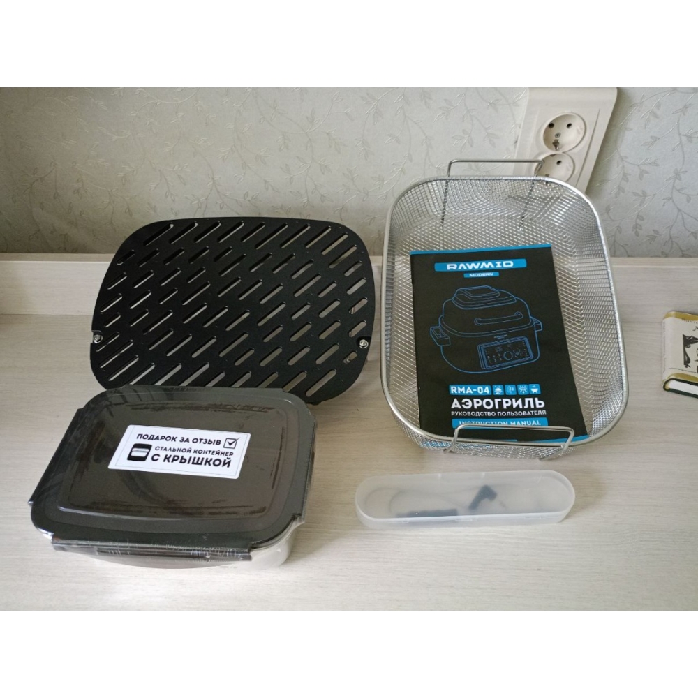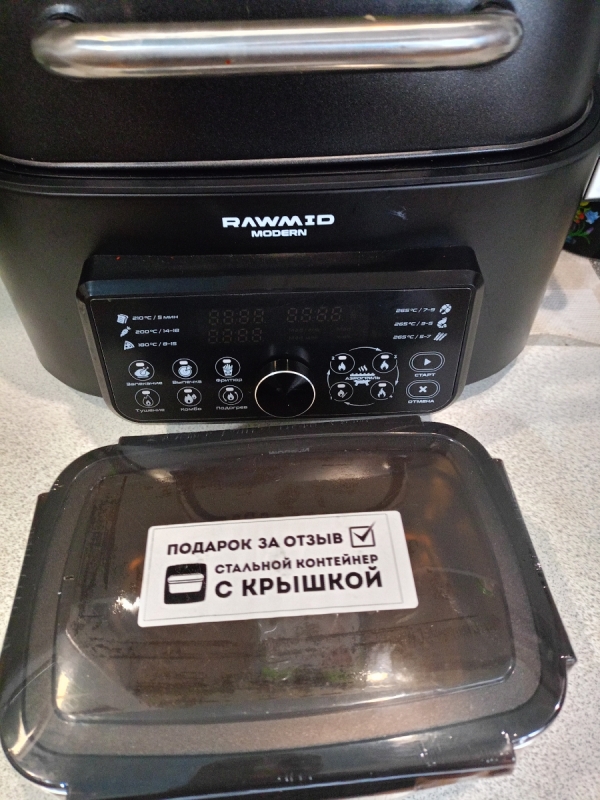 Если в обычном контактном гриле можно запекать продукты только определённой толщины, то в аэрогриле RAWMID Modern RMA-04 можно готовить всё что угодно. Благодаря объёмной вместительной ёмкости аэрогриля, в нём можно одновременно готовить мясной стейк и тушёные овощи, печь пирожки и запекать рыбу. А можно вообще запечь целую курицу.