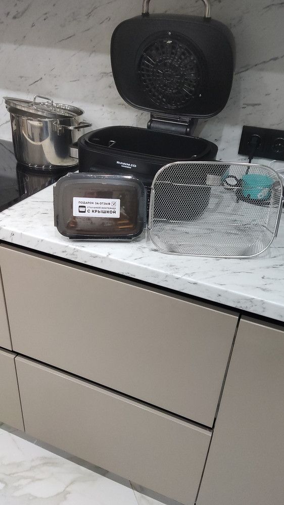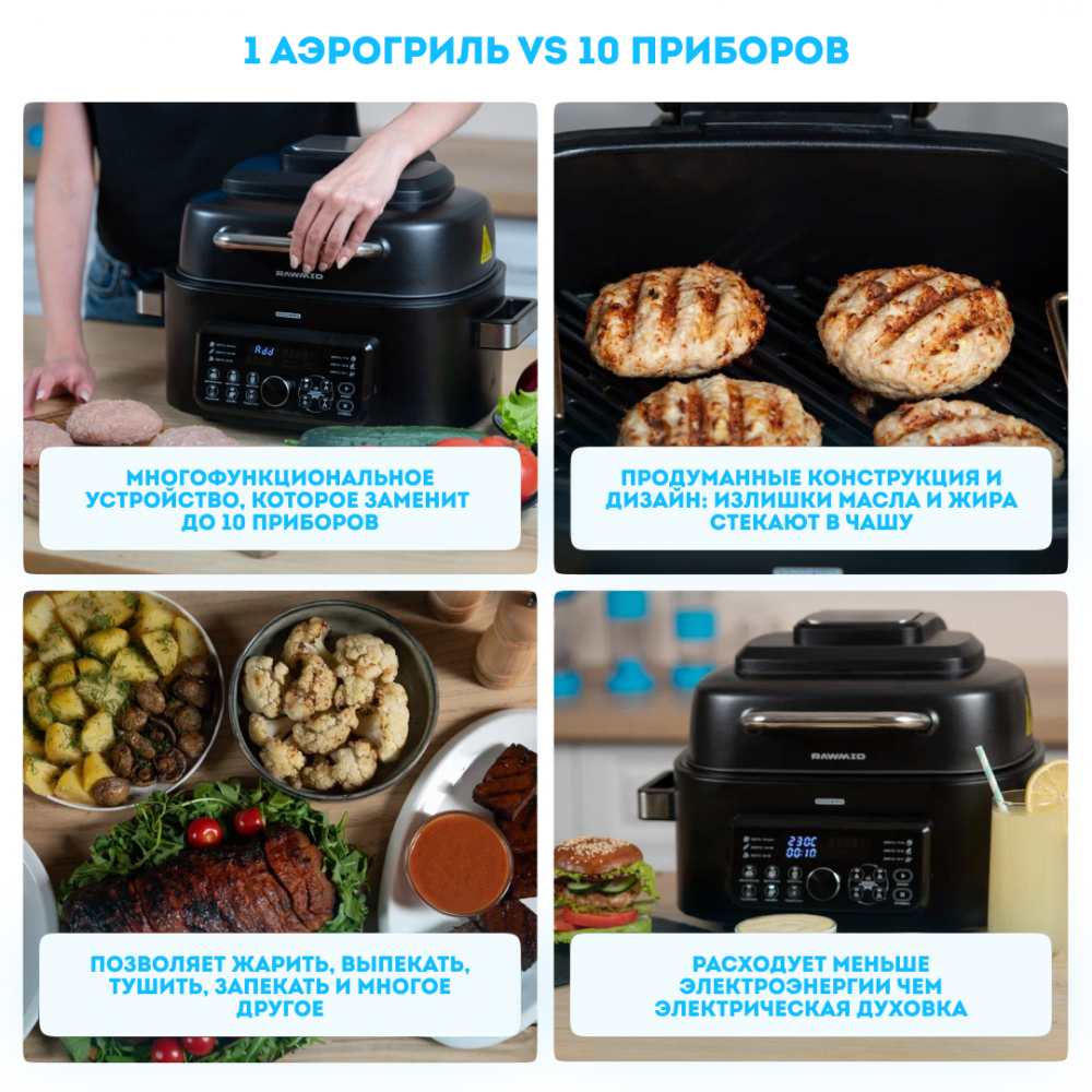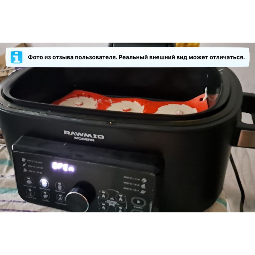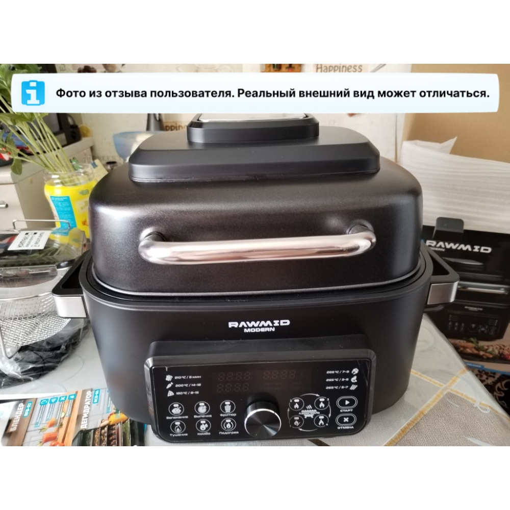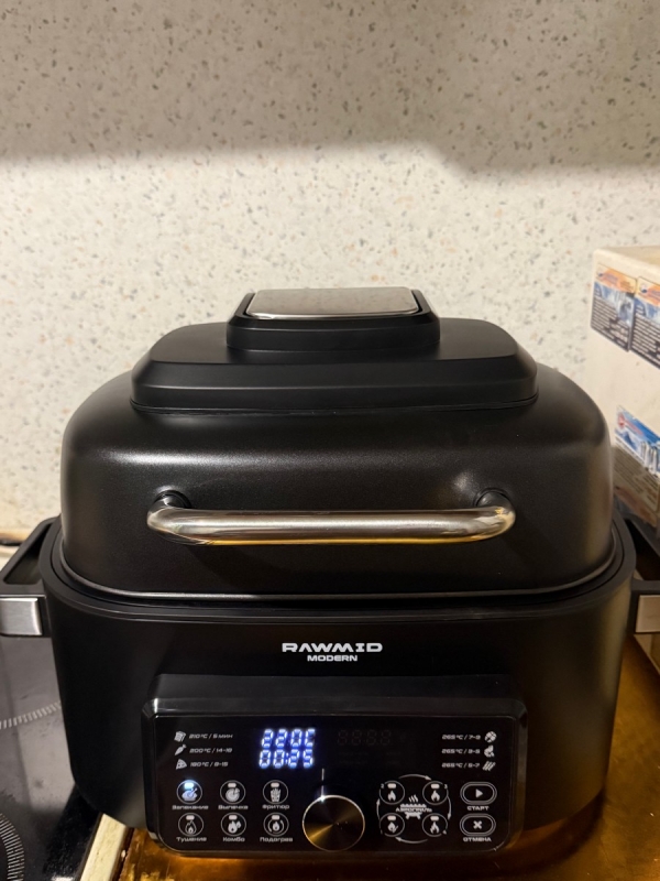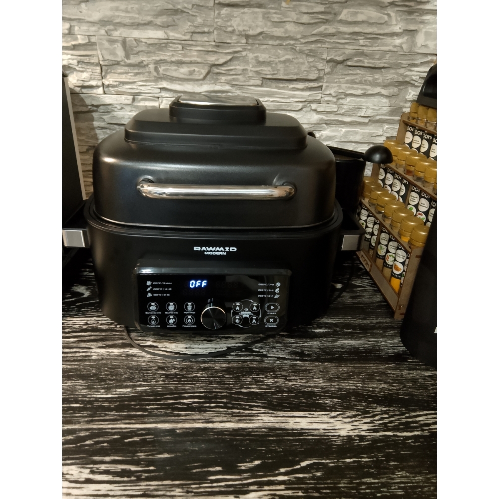 Если в обычном контактном гриле можно запекать продукты только определённой толщины, то в аэрогриле RAWMID Modern RMA-04 можно готовить всё что угодно. Благодаря объёмной вместительной ёмкости аэрогриля, в нём можно одновременно готовить мясной стейк и тушёные овощи, печь пирожки и запекать рыбу. А можно вообще запечь целую курицу.