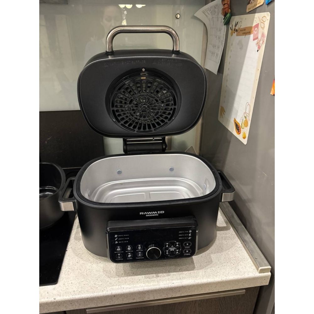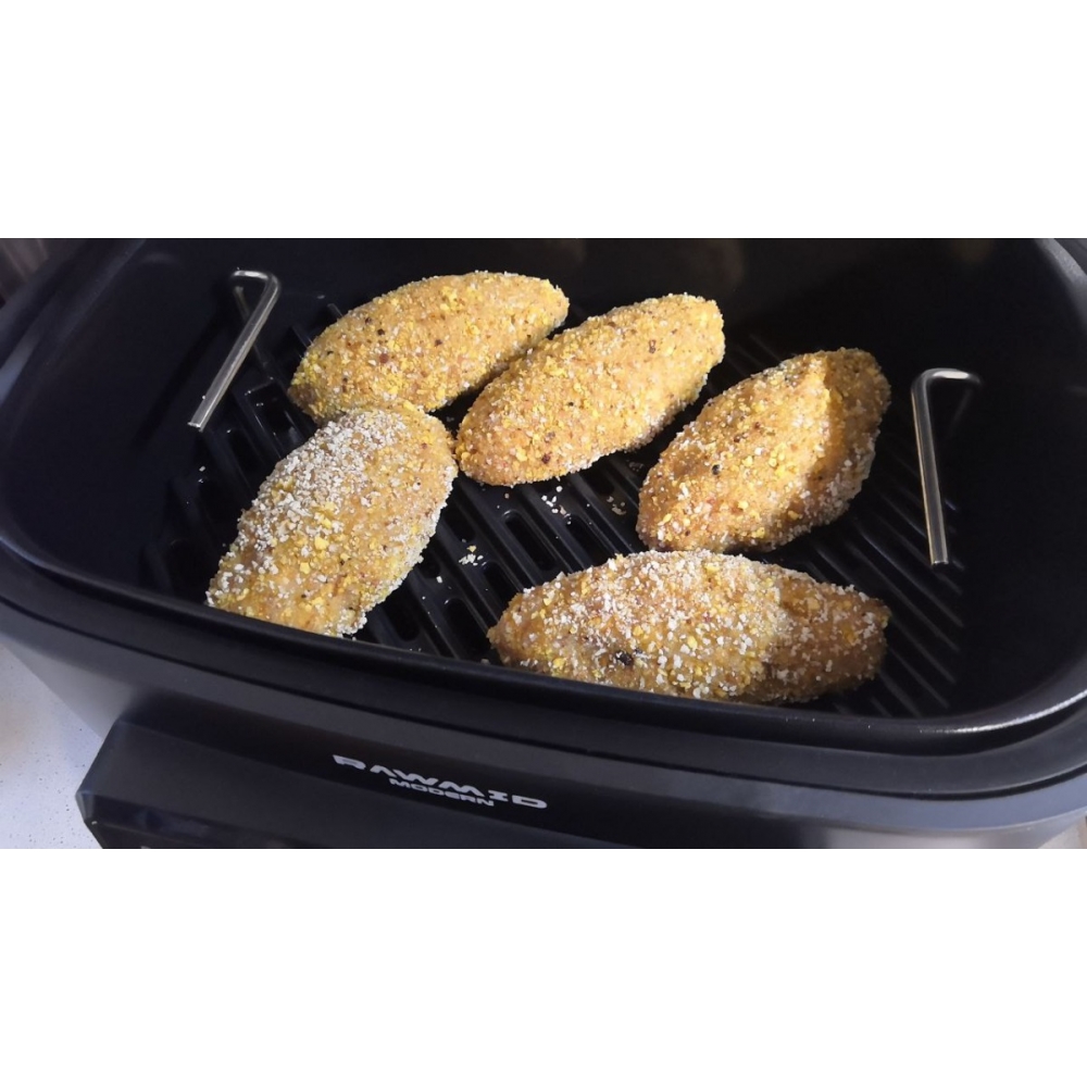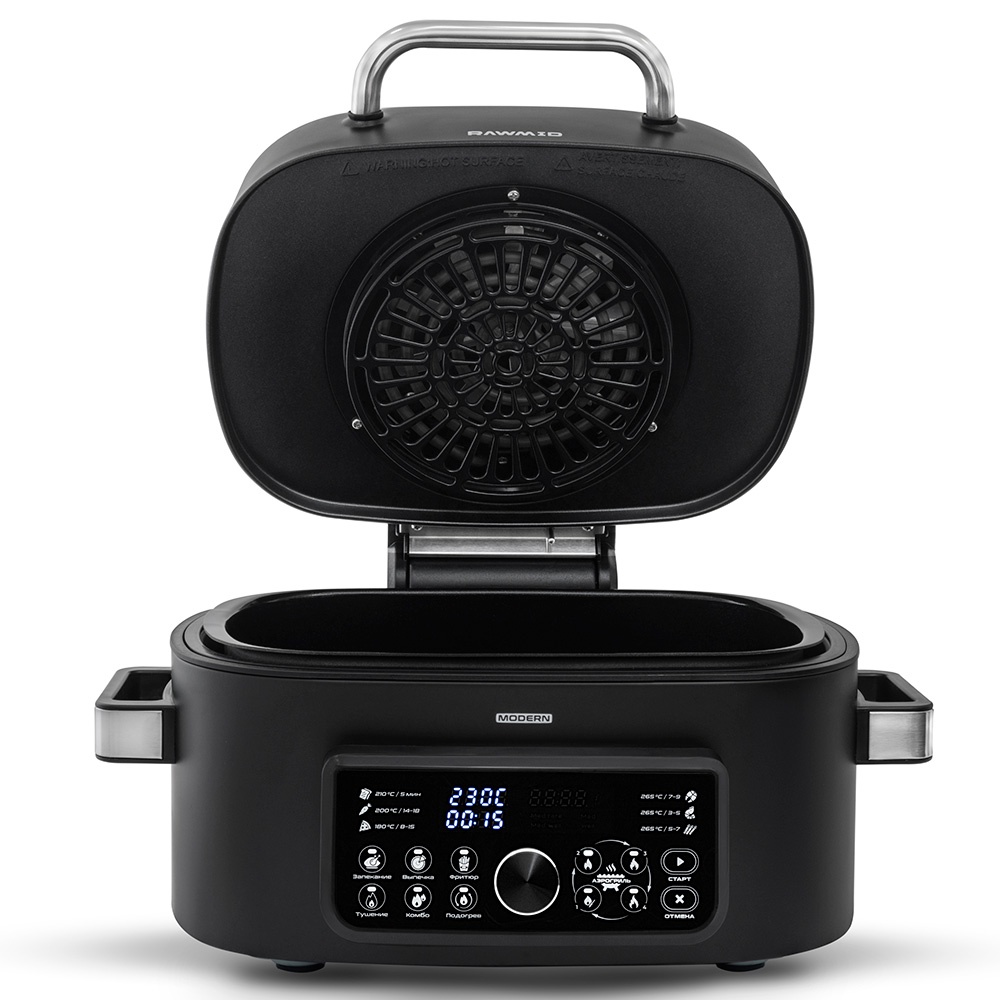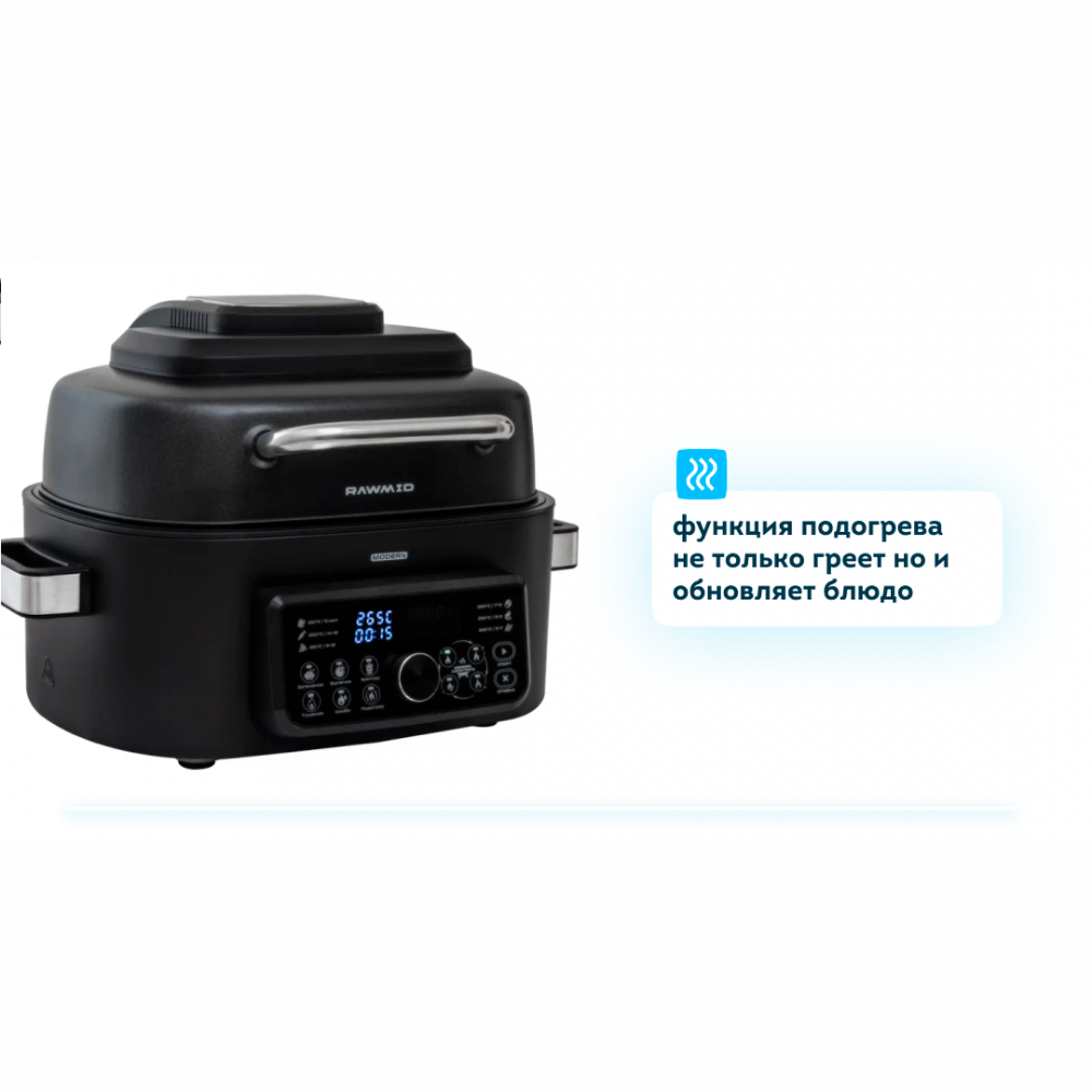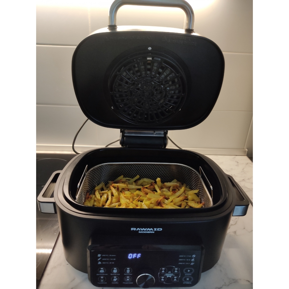 В отличие от контактных грилей, в аэрогриле RAWMID Modern продукты обжариваются потоками раскалённого воздуха, благодаря чему они не сгорят даже если их немного передержать. Вам не придётся быть экспертом в готовке и замерять время с точностью до секунды. Забудьте об опасениях пережарить и сжечь блюдо — просто наслаждайтесь процессом приготовления.