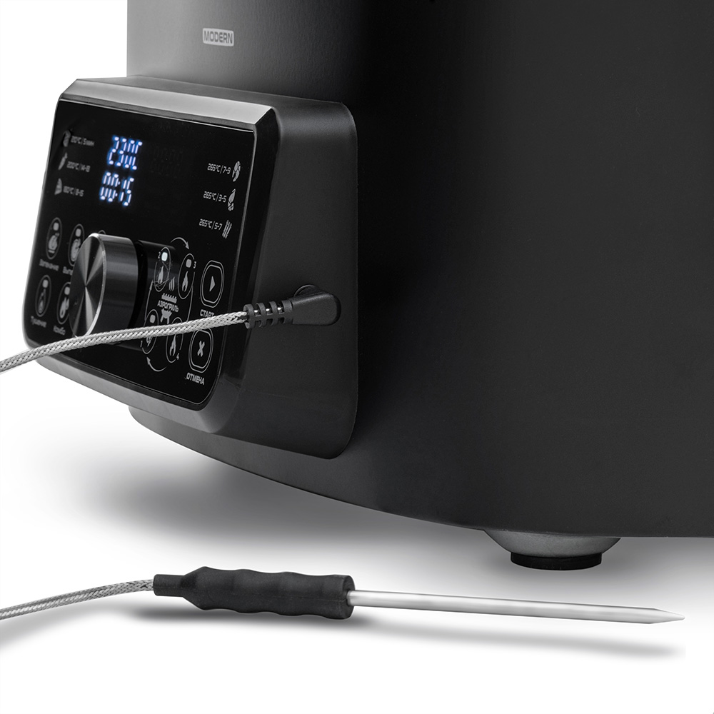 Термощуп позволяет контролировать процесс приготовления мяса с точностью до градуса, обеспечивая желаемую степень прожарки: medium rare (слабая), medium (средняя), medium well (хорошая), well done (полная).