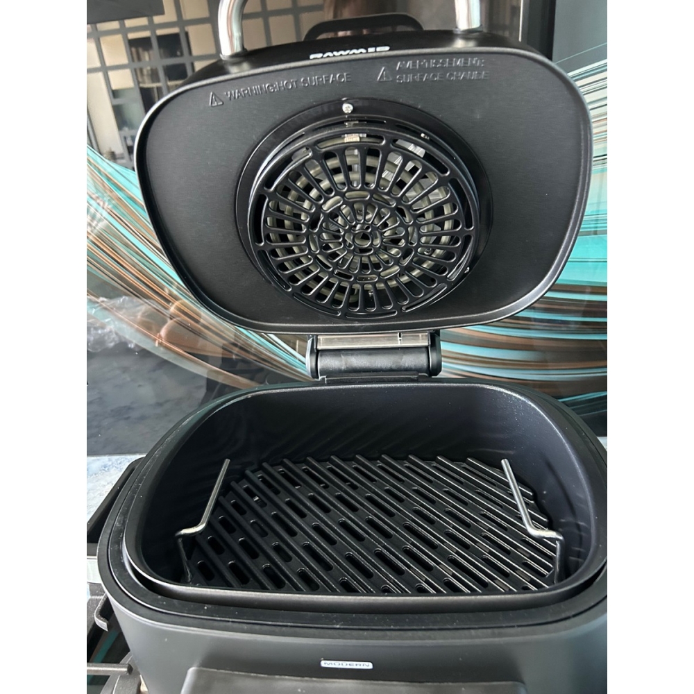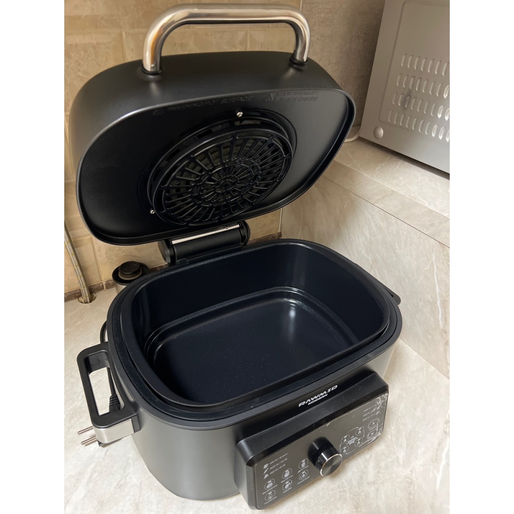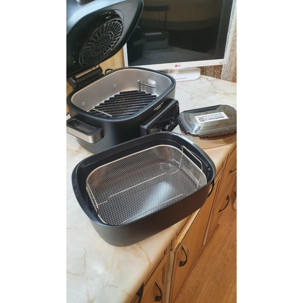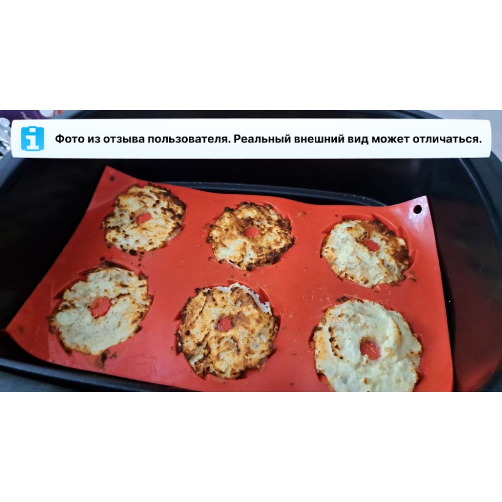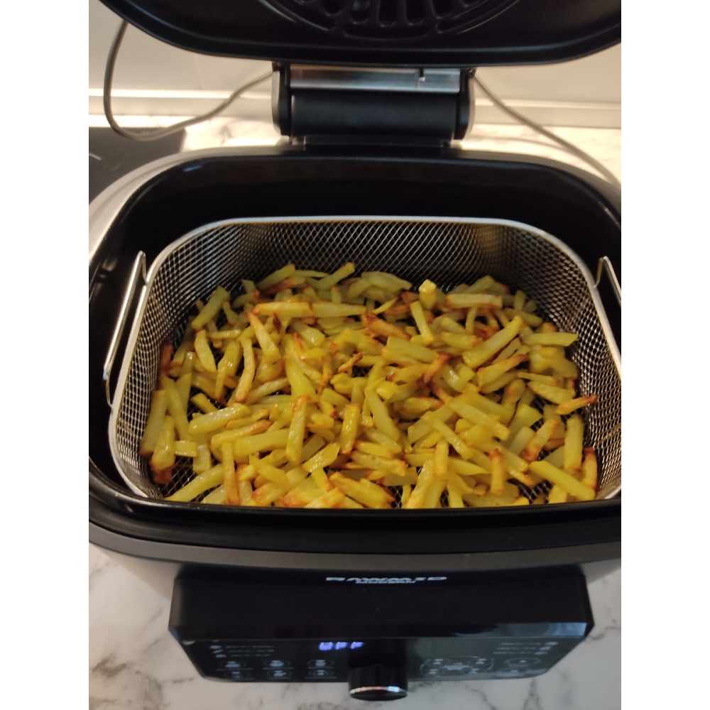 Большой многолопастной вентилятор, расположенный в верхней крышке устройства, сквозная решётка-гриль и обтекаемая форма чаши для запекания обеспечивают мощный и равномерный со всех сторон 3D-обдув продуктов для их равномерной обработки горячим воздухом.