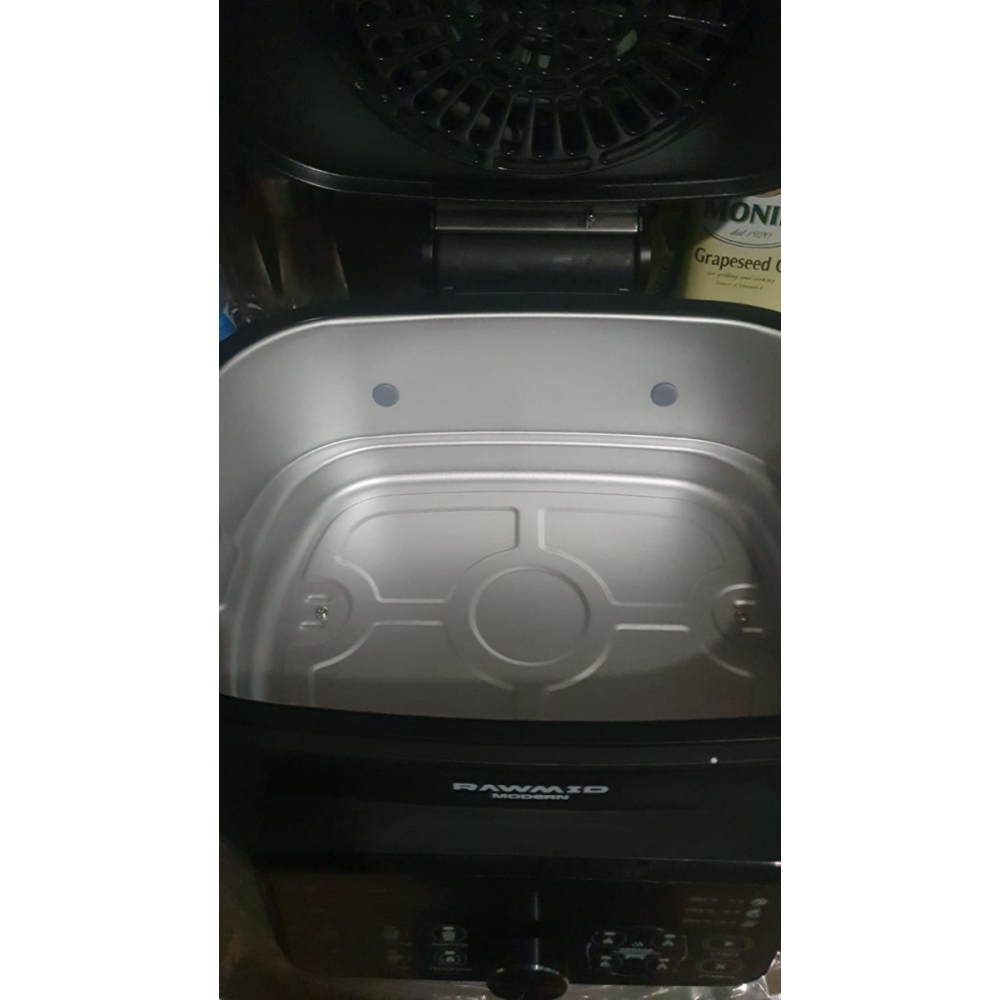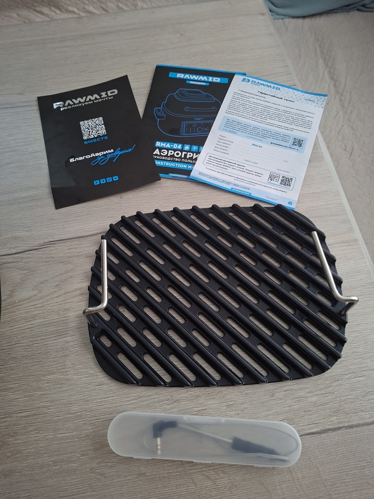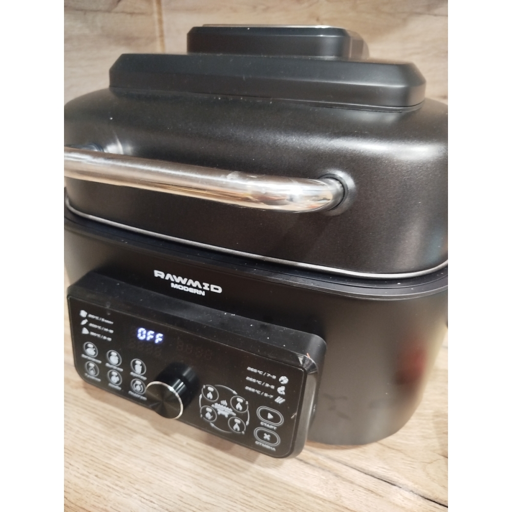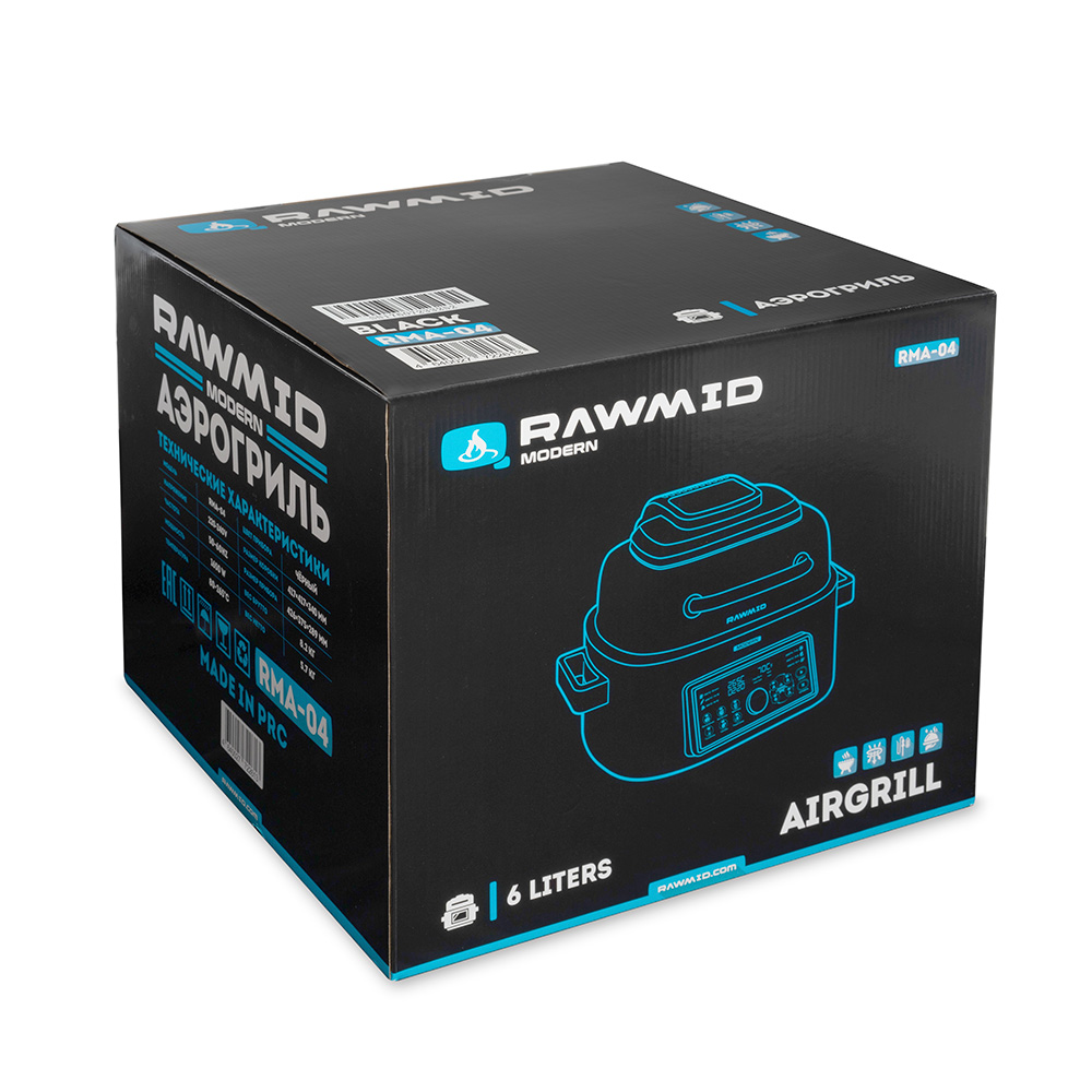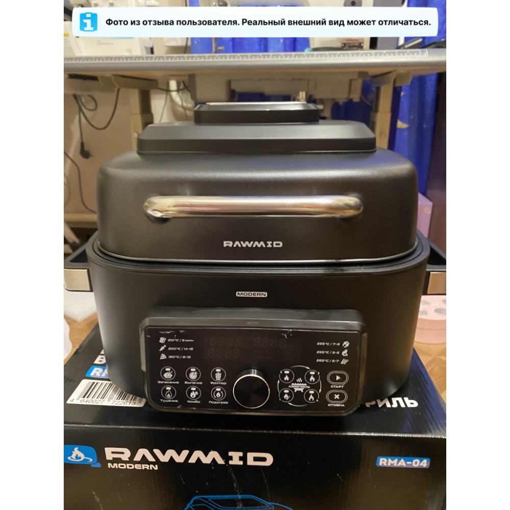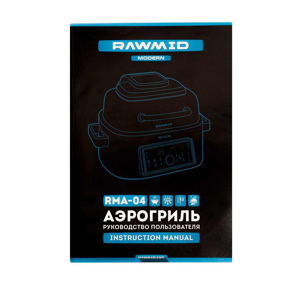 Аэрогриль RAWMID Modern лёгок и прост в уходе. Продукты нагреваются воздухом, а не решёткой, поэтому масло, специи и прочие ингредиенты не прилипают к поверхности (как это бывает с контактными грилями). К тому же чаша для запекания и решётка-гриль имеют стойкое керамическое антипригарное покрытие, с которого остатки пищи легко смываются. Нагревательный элемент спрятан в верхнюю крышку и никак не контактирует с продуктами, поэтому его вовсе не придётся чистить.