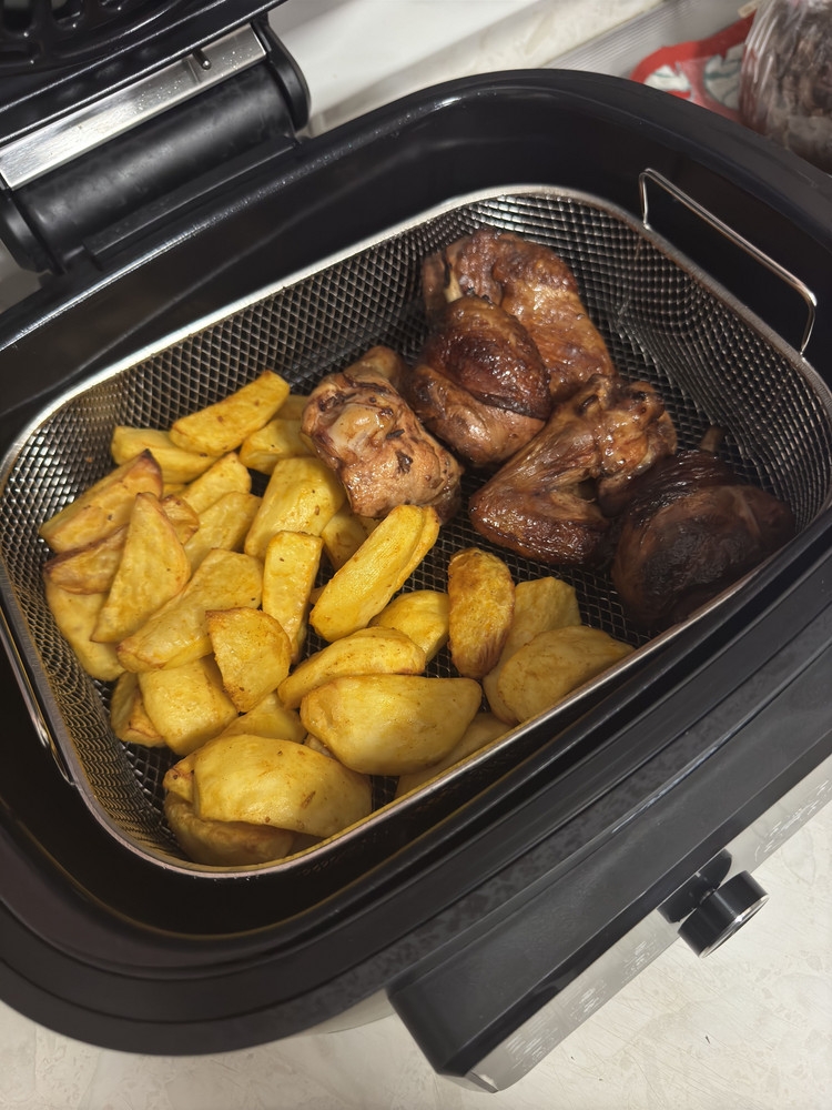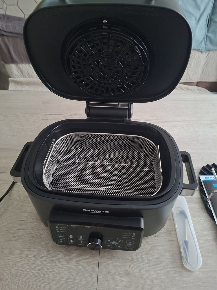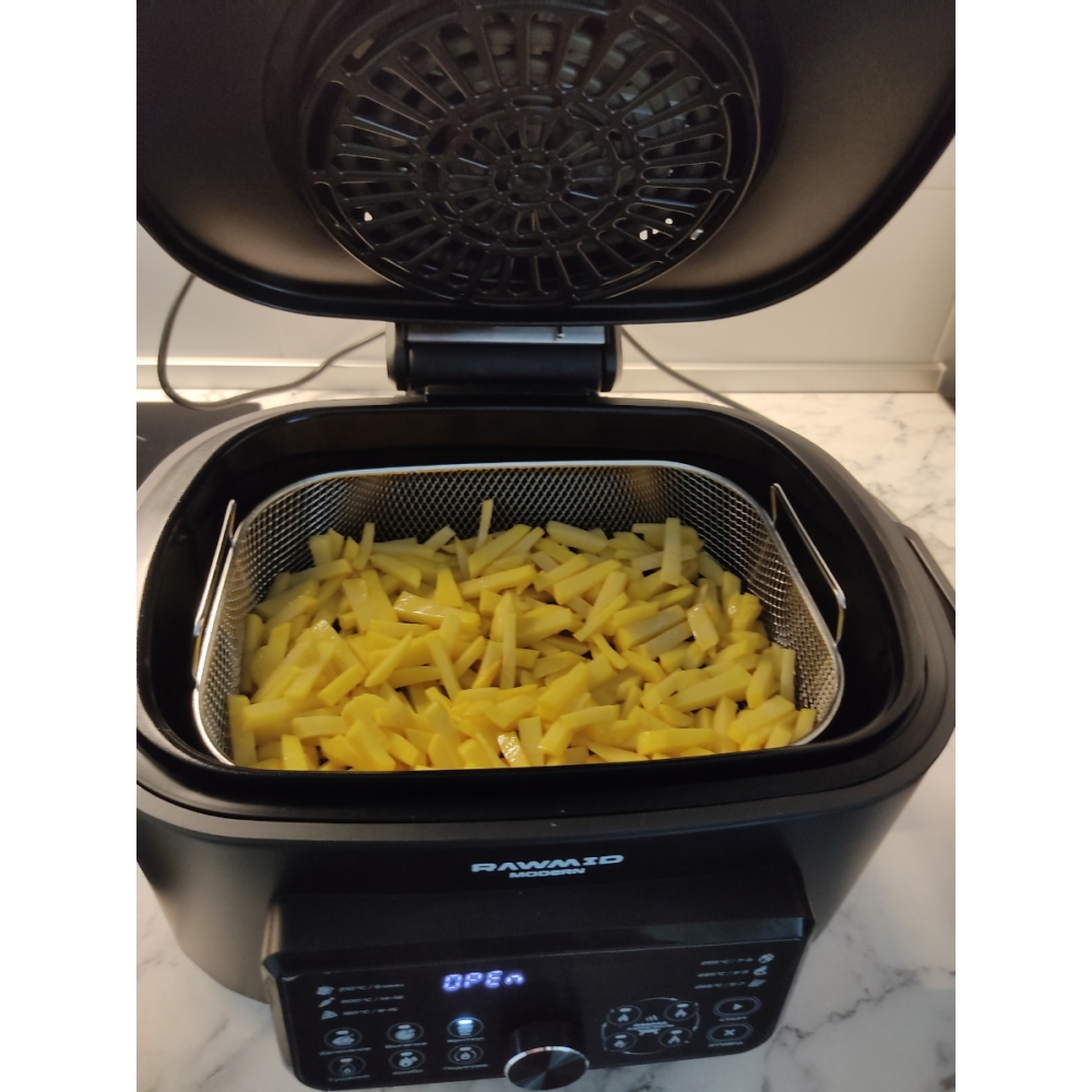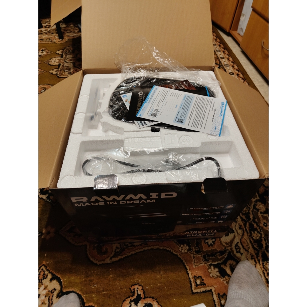 Просто включите прибор, прогрейте его и положите продукты. Всё остальное аэрогриль сделает за Вас. Не нужно постоянно открывать крышку и переворачивать продукты — они и так будут обжариваться равномерно со всех сторон за счёт продуманной циркуляции воздуха. А пока аэрогриль RAWMID работает, вы можете заняться своими делами.
