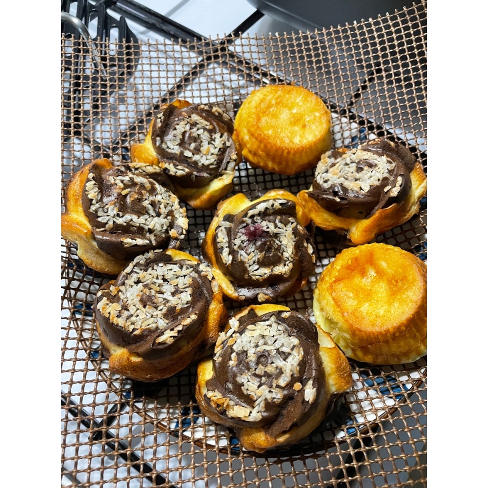 Мясные и рыбные стейки, вегетарианские стейки из тофу или сейтана, картофель фри или по-деревенски, тушёные или жаренные овощи и грибы, пирожки и булочки, пиццу, печенье и многое-многое другое.