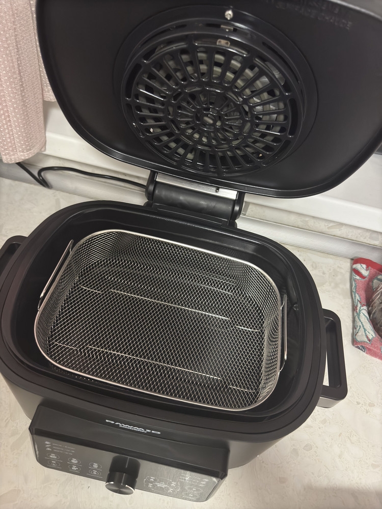За нагрев воздуха отвечает обширный и мощный нагревательный элемент, выполненный из долговечной стали и расположенный в верхней крышке устройства. Спиральная форма нагревательного элемента обеспечивает широкий охват пространства и быстрый прогрев воздуха. Съёмная защитная решётка нагревателя предотвращает его загрязнение, а также способствует более равномерному распределению воздуха в чаше.