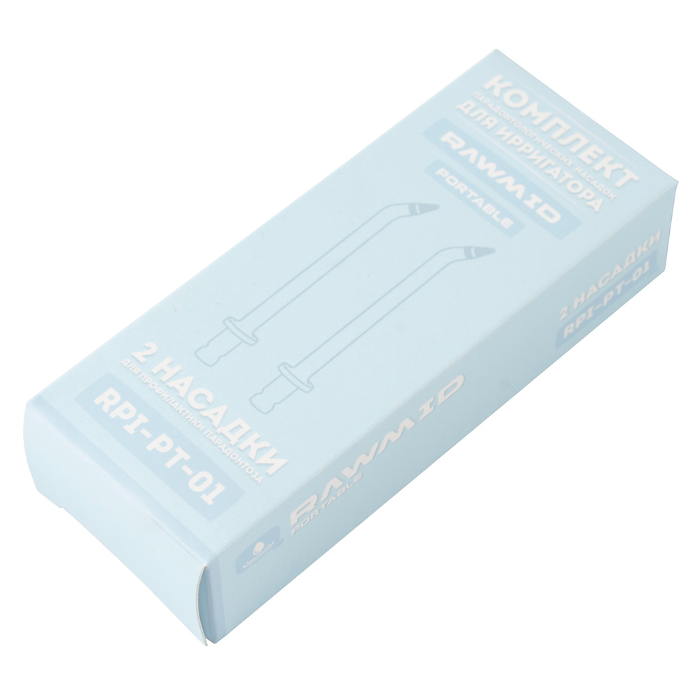 Комплект пародонтологических насадок для ирригатора RAWMID Portable RPI-01 (в комплекте 2 шт). Имеют специальную конструкцию с мягким наконечником из пищевого безопасного силикона. Такие насадки идеально подходят для очистки десневых (пародонтальных) карманов. Также они подойдут для тех, у кого чувствительные дёсны.
