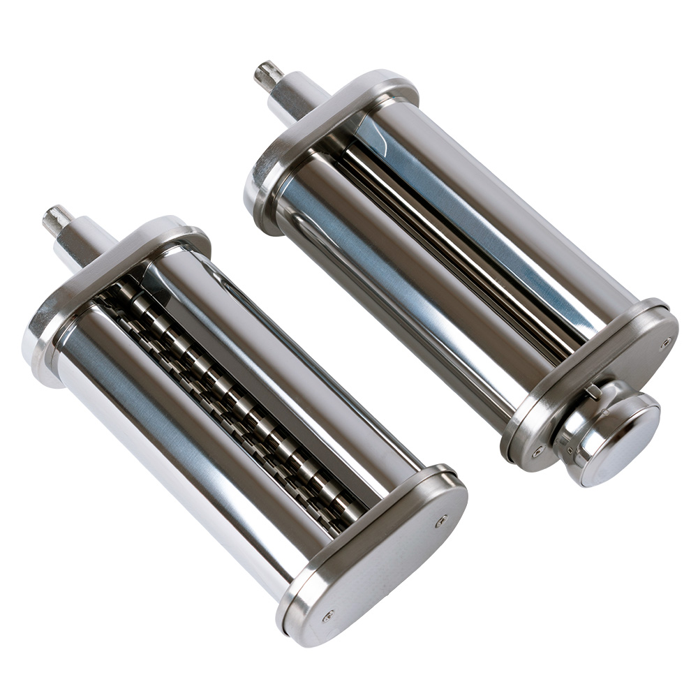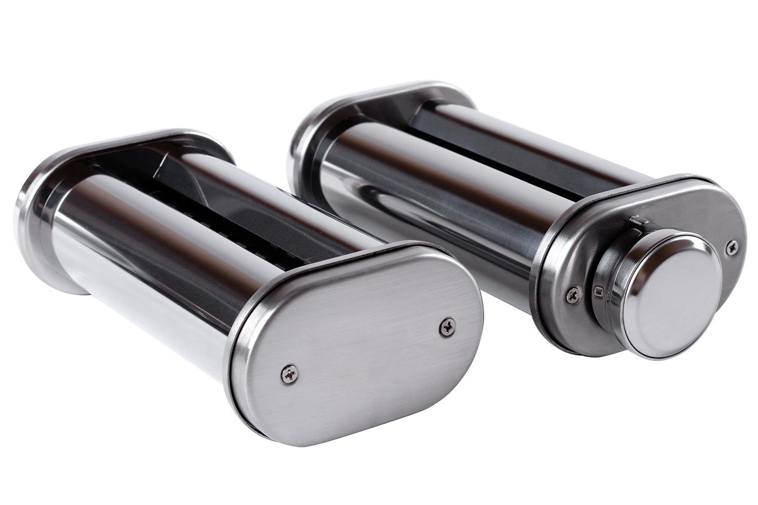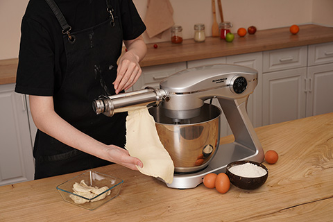 Насадка для автоматической раскатки теста позволяет легко и быстро получать идеально ровные пласты для лазаньи, пельменей, вареников, пирогов и прочих блюд. Вы сможете забыть про скалку и экономить ваши силы, нервы и время. Просто загрузите комок теста в насадку — и она всё сделает за вас. На выходе получается пласт шириной до 14 см и толщиной от 1 до 8 мм.