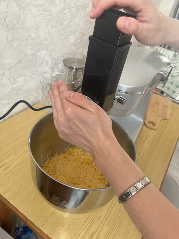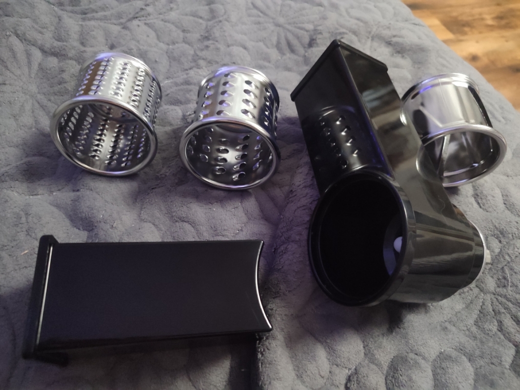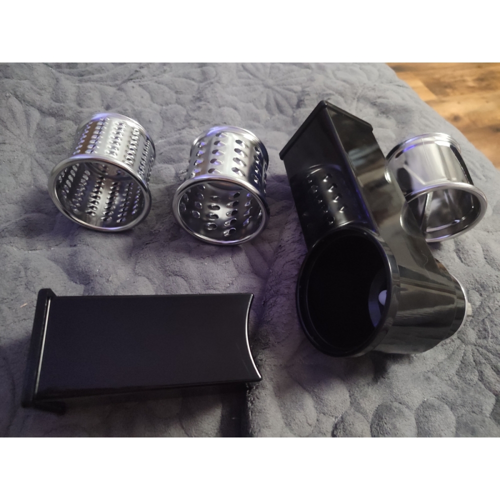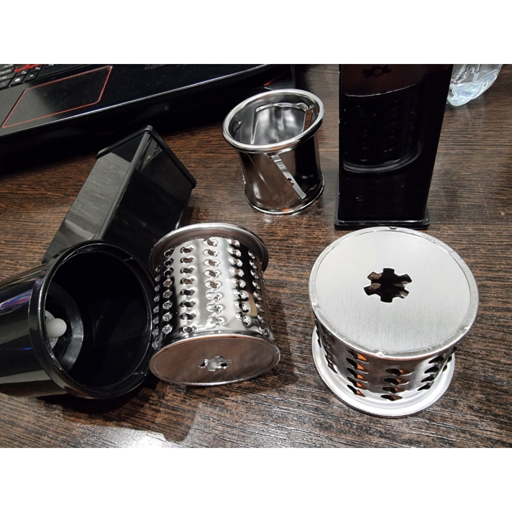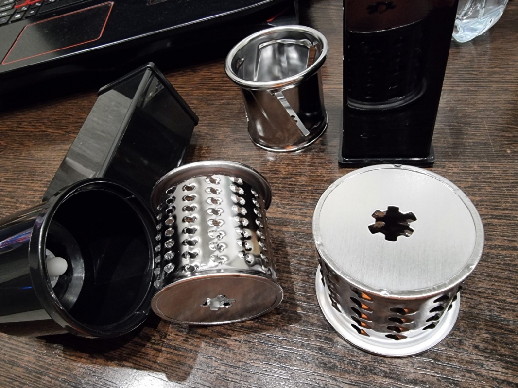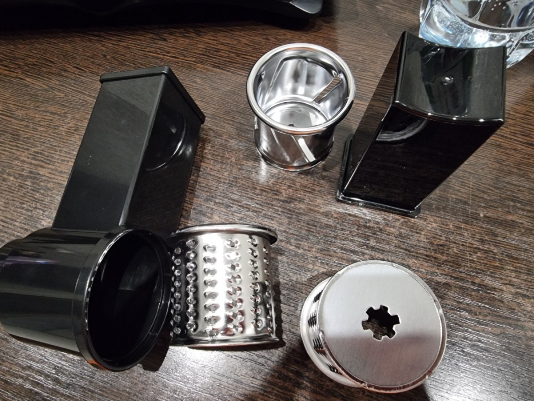 В комплект входит толкатель, обеспечивающий безопасную подачу продуктов к тёрке.