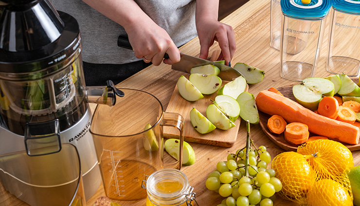 Плоды не обязательно очищать от кожуры — соковыжималка RAWMID без проблем её переработает. Однако в некоторых случаях кожура может сказаться на вкусовых свойствах свежевыжатого сока, придав ему горечь.