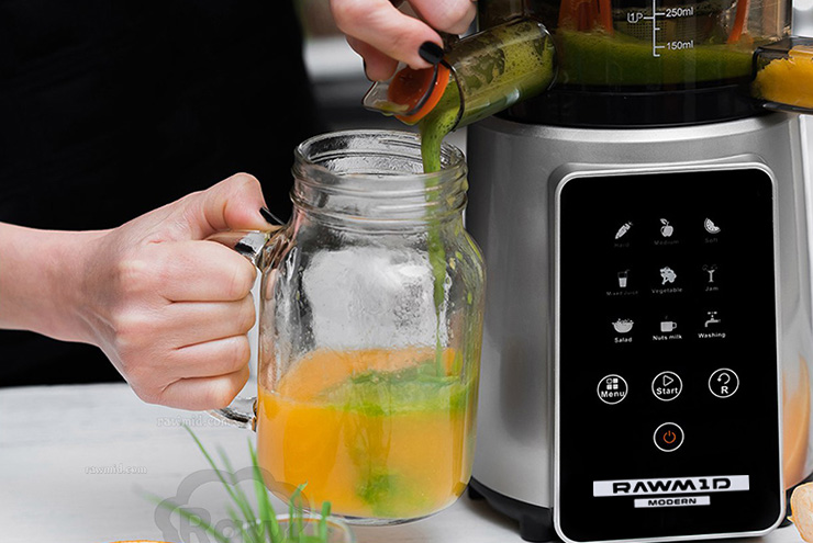Чтобы уменьшить содержание мякоти, после отжима можно отфильтровать сок при помощи обычного сита. Особенно это актуально, если вам нужен чистый свежевыжатый сок без примесей. Кстати, в соковыжималке RAWMID Modern JDM-80 специальное сито уже входит в комплект. Также можно залить сок с мякотью в соковыжималку и ещё раз прогнать его.