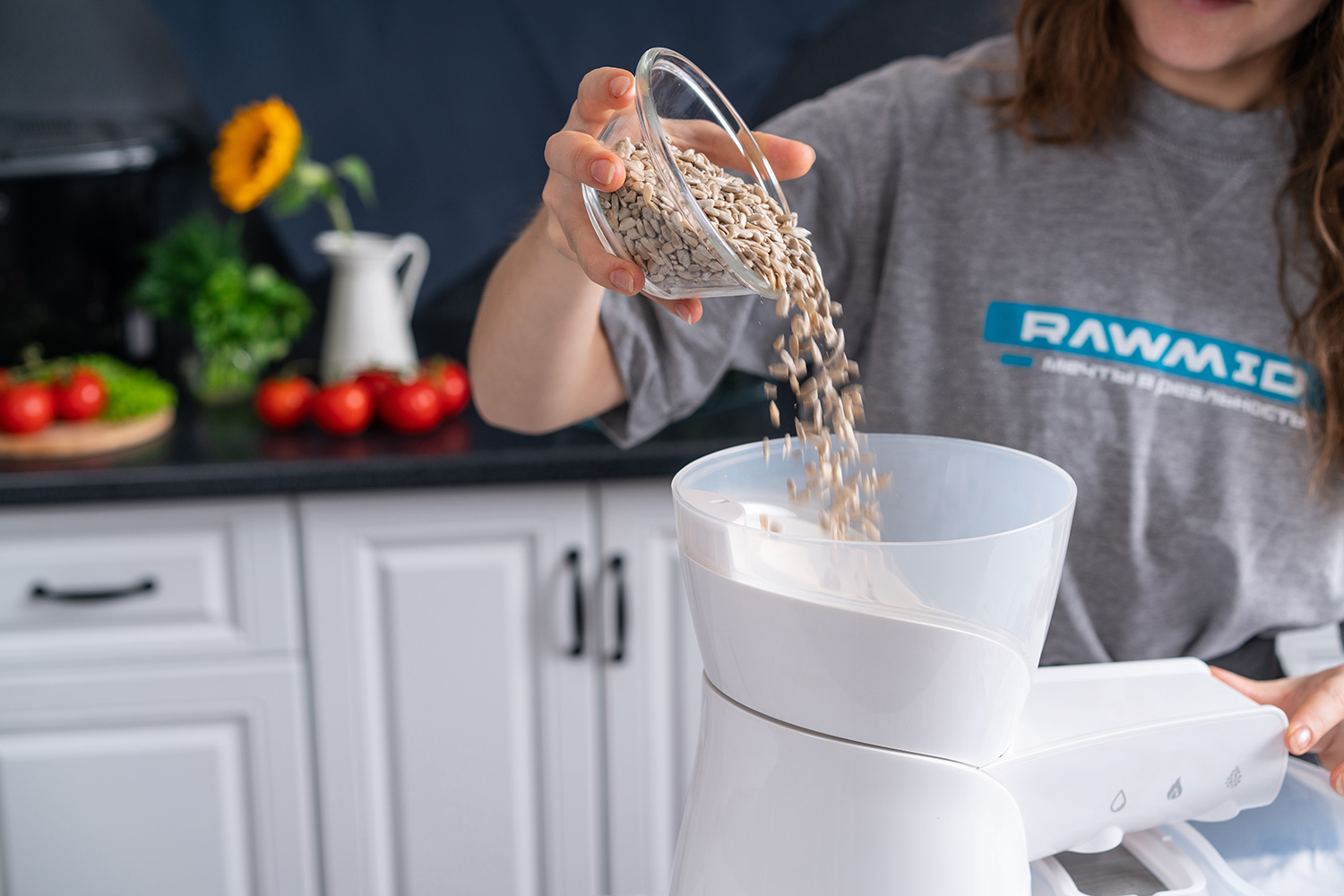 Начинается всё с выбора оборудования. Современные маслопрессы для дома — это не те тяжёлые агрегаты, которыми когда-то пользовались в деревнях. Это компактные, стильные и простые в управлении приборы, такие как RAWMID ODM-01, RMO-02 или RMO-03. Они созданы специально для домашнего использования и при этом дают масло не хуже, а часто — даже лучше, чем покупное. Главное отличие — вы полностью контролируете процесс и получаете продукт без участия химии. Промышленным производителям это, увы, не по карману — ведь чем натуральнее продукт, тем короче срок хранения, а значит, меньше выгоды.