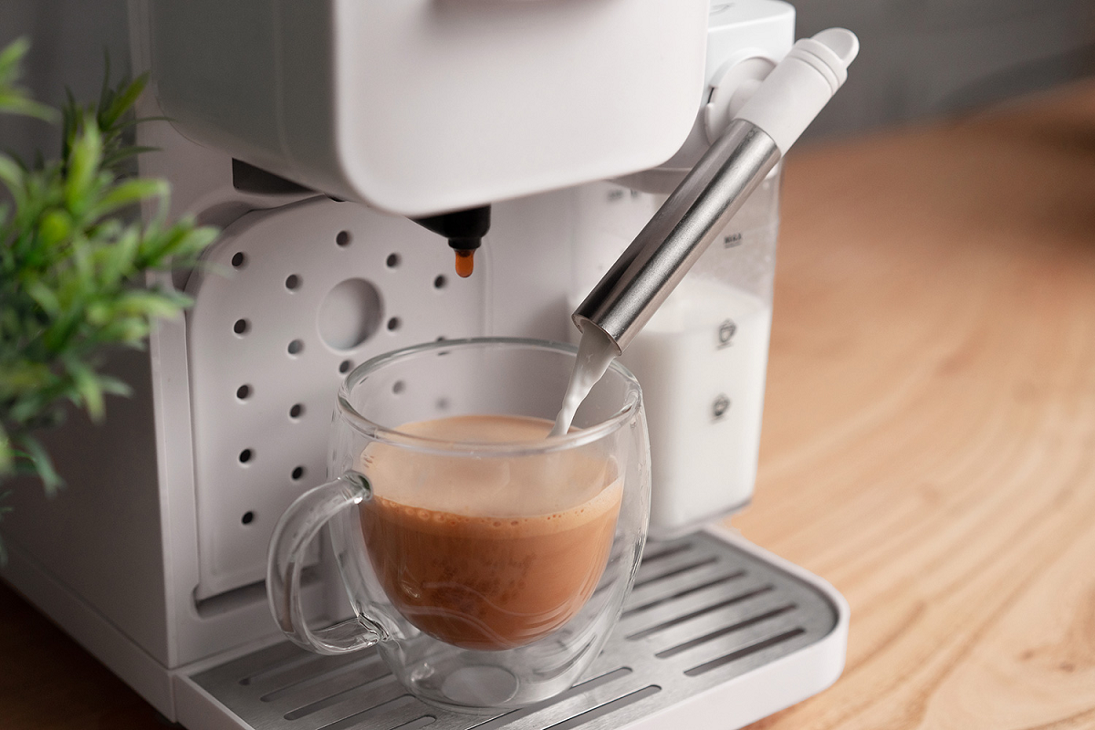 Если вы любите капучино, латте или флет‑уайт, автоматический капучинатор быстро поднимет молочную пенку. Регулируемый паровой стержень легко очищается и позволяет получить нужную плотность пенки в один клик.