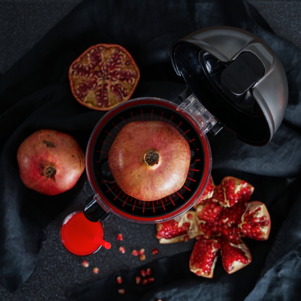 Гранат — один из самых сложных фруктов для обработки. Он жёсткий, его неудобно чистить, сок разбрызгивается при любом движении. Но RAWMID Mini RMJ-02 с этой задачей справляется уверенно: встроенный нож разрезает плод, а конусы выжимают сок, оставляя все косточки и кожицу в фильтрах. В результате, весь сок — прямо в стакане, а все отходы — аккуратно остаются внутри съёмных насадок. Всё это доказательство того, как технология работает на пользователя!