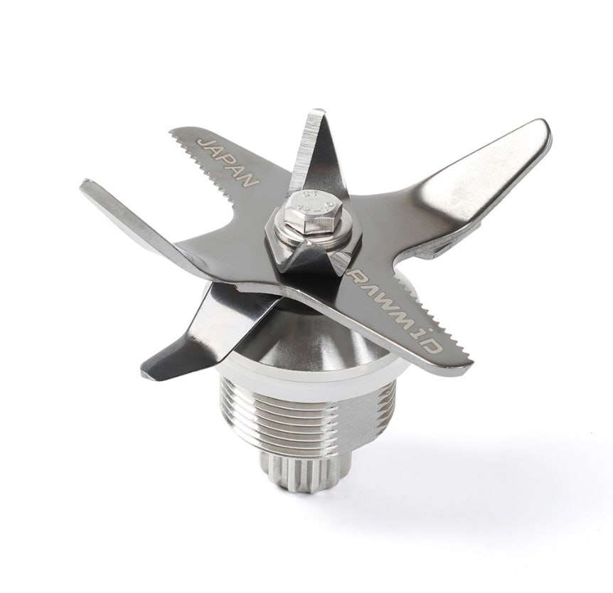 2. Грибовидная муфта служит связкой между мотором и ножом. Как вы понимаете нож - важная часть блендера, от которой зависит качество и скорость измельчения. В стационарных блендерах RAWMID используются японские ножи (от 4 до 8 лезвий) с заводской заточкой. Обратите внимание - качественные ножи отличаются еще и количеством ребер крепления, что увеличивает их срок службы, благодаря равномерному распределению давления на каждое ребро. Что касается более дешевой техники, то там используется низкопробная сталь, заточка не всегда соответствует описанию, а малое количество ребер крепления чревато быстрым износом и подлежат замене.