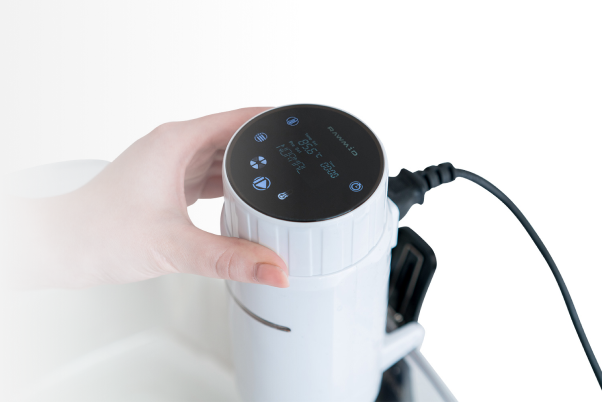 • В су-виде есть возможность приготовления как по градусам Цельсия, так и по Фаренгейту. Для этого нажмите на кнопку температуры и одним касанием можно выбрать Цельсии или переключиться на Фаренгейты.
