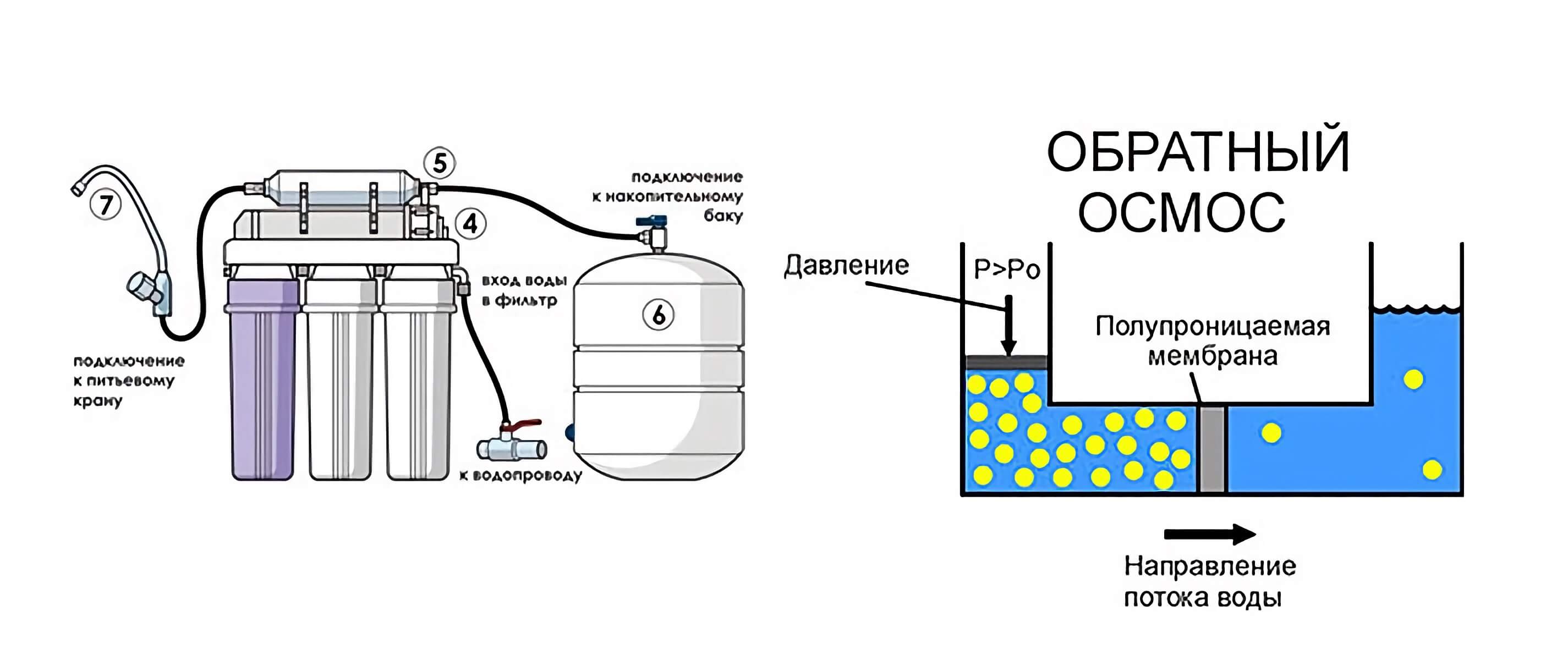 • Обратноосмотические системы — самые технологичные, удаляют до 99% загрязнений.
