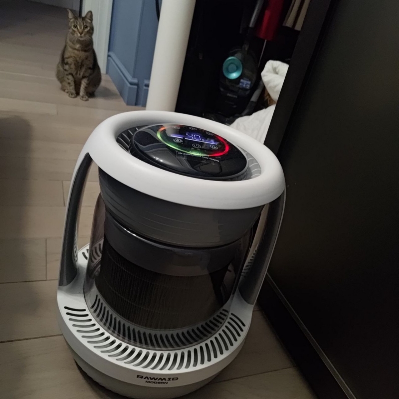 В мойке воздуха RAWMID Modern увлажнение основано на принципе естественного испарения воздуха — без переувлажнения, без луж возле увлажнителя, без белого налёта на мебели, без необходимости фильтровать воду, в отличие от ультразвуковых увлажнителей.