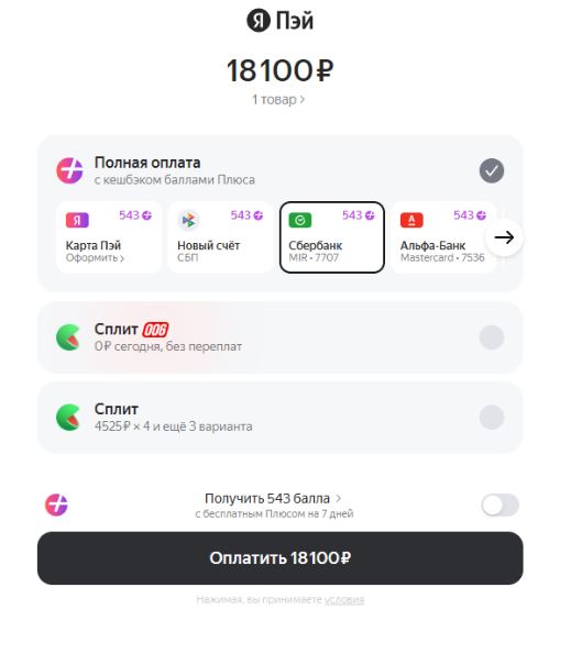 Оплата через YandexPay и СПЛИТ