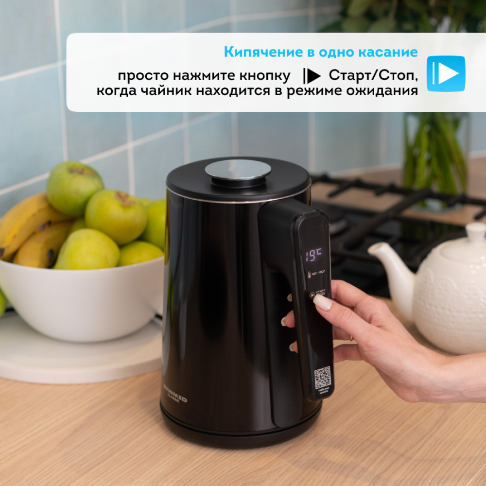 Чтобы вскипятить воду, просто нажмите кнопку |▶ Старт/Стоп, когда чайник находится в режиме ожидания.