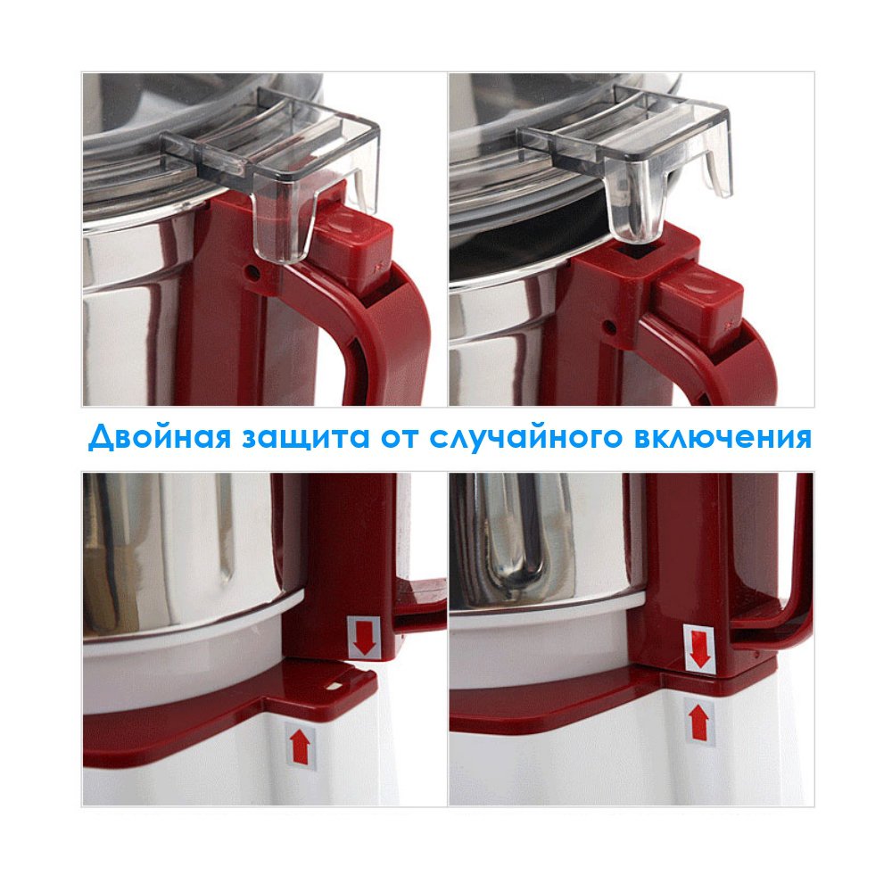 Универсальный блендер-соковыжималка имеет приятную оболочку, а его объемная стальная чаша придает устройству профессиональный вид. Эргономичный дизайн позволяет модели занимать меньше места даже несмотря на большую вместительность и функциональность. Прорезиненные ножки – это приятное дополнение, делающее эксплуатацию более удобной.