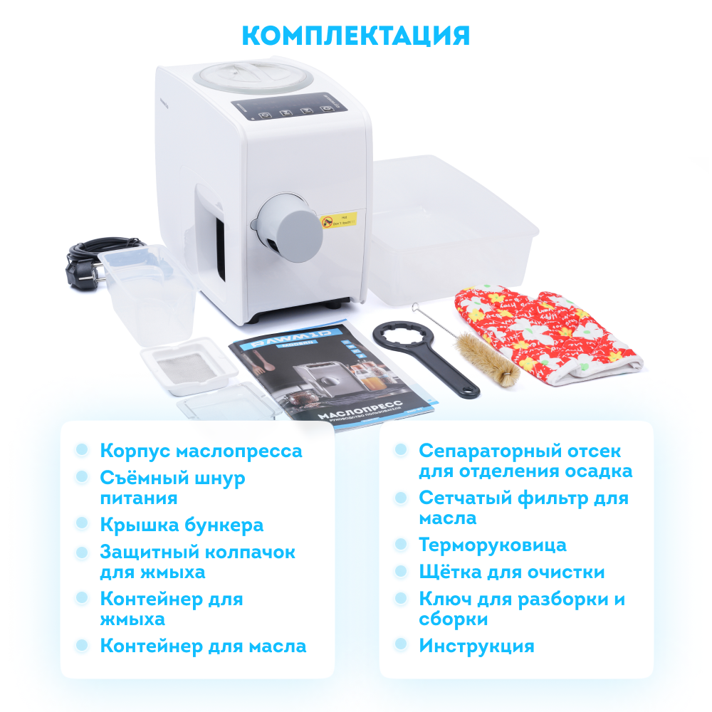 В комплект маслопресса входят:
