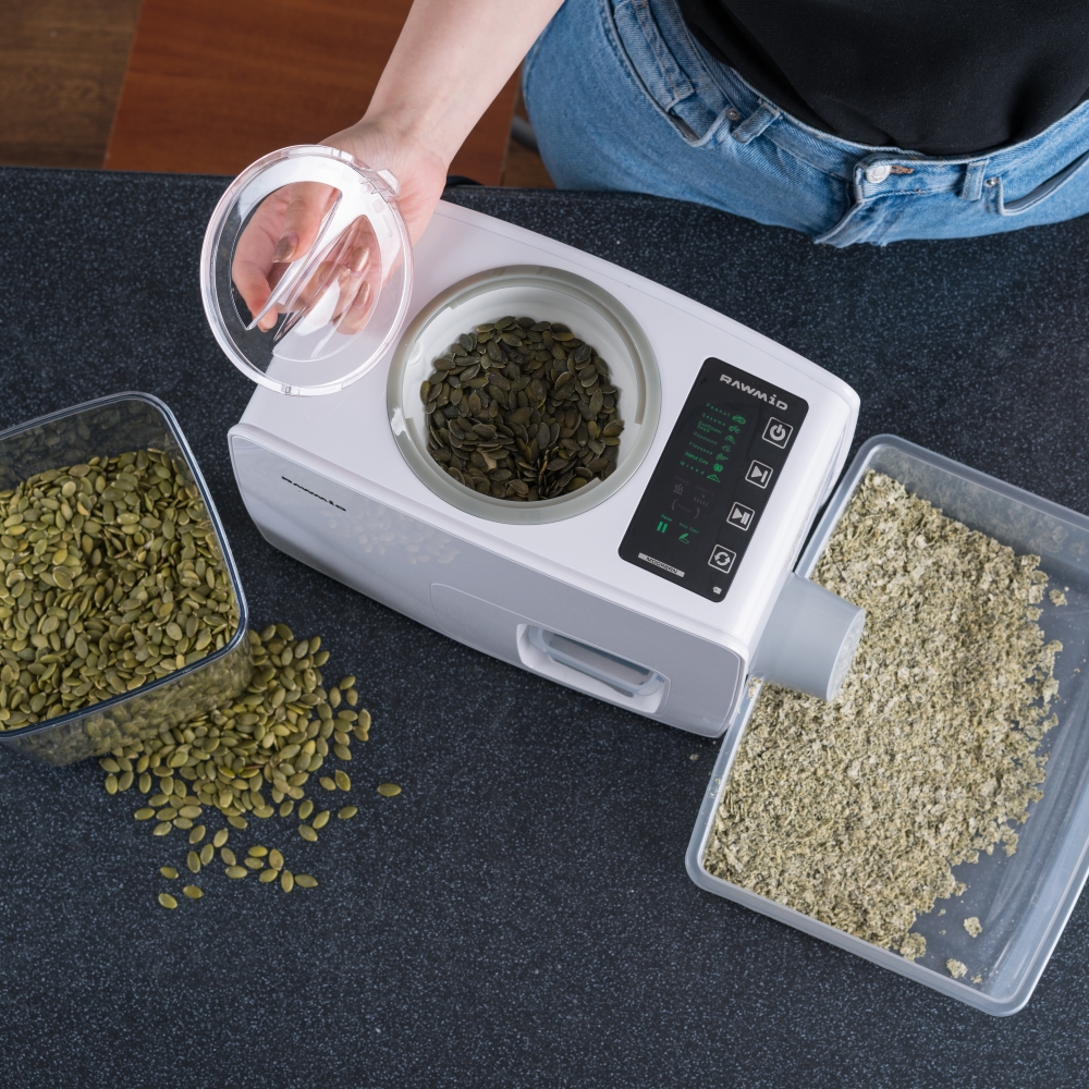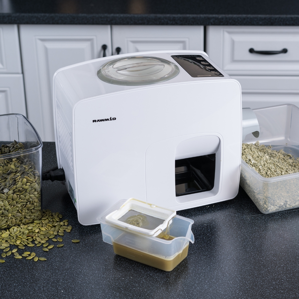Бытовой маслопресс RAWMID Modern RMO-03 – это домашний прибор для отжима растительного масла из различных маслосодержащих культур (лён, подсолнечник, кунжут, арахис, миндаль и т.д.). Вы сможете приготовить свежее ароматное масло, несравнимое по качеству с магазинным, прямо у себя дома. А использовать бытовой маслопресс RAWMID Modern очень просто, ведь в нём есть 7 автоматических режимов под любой тип сырья.
