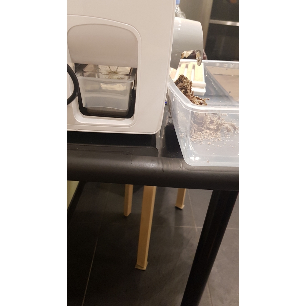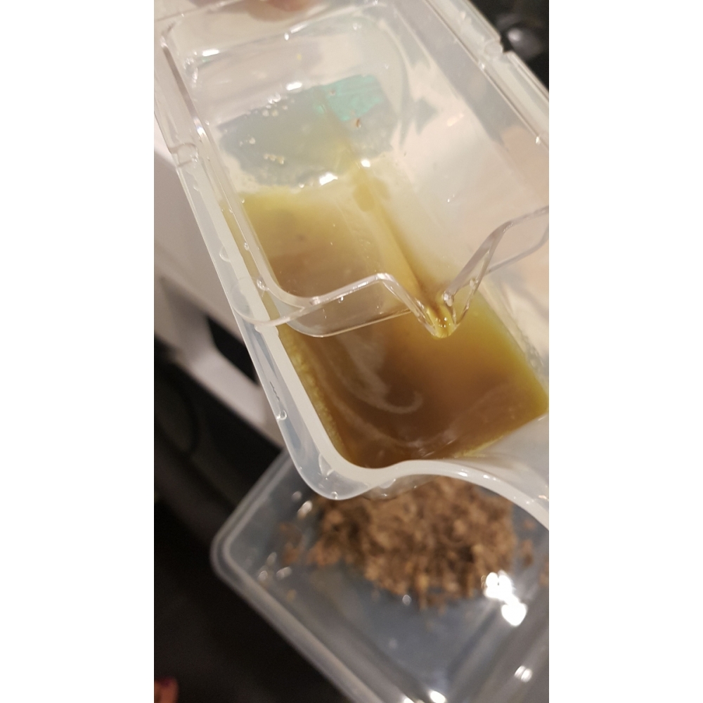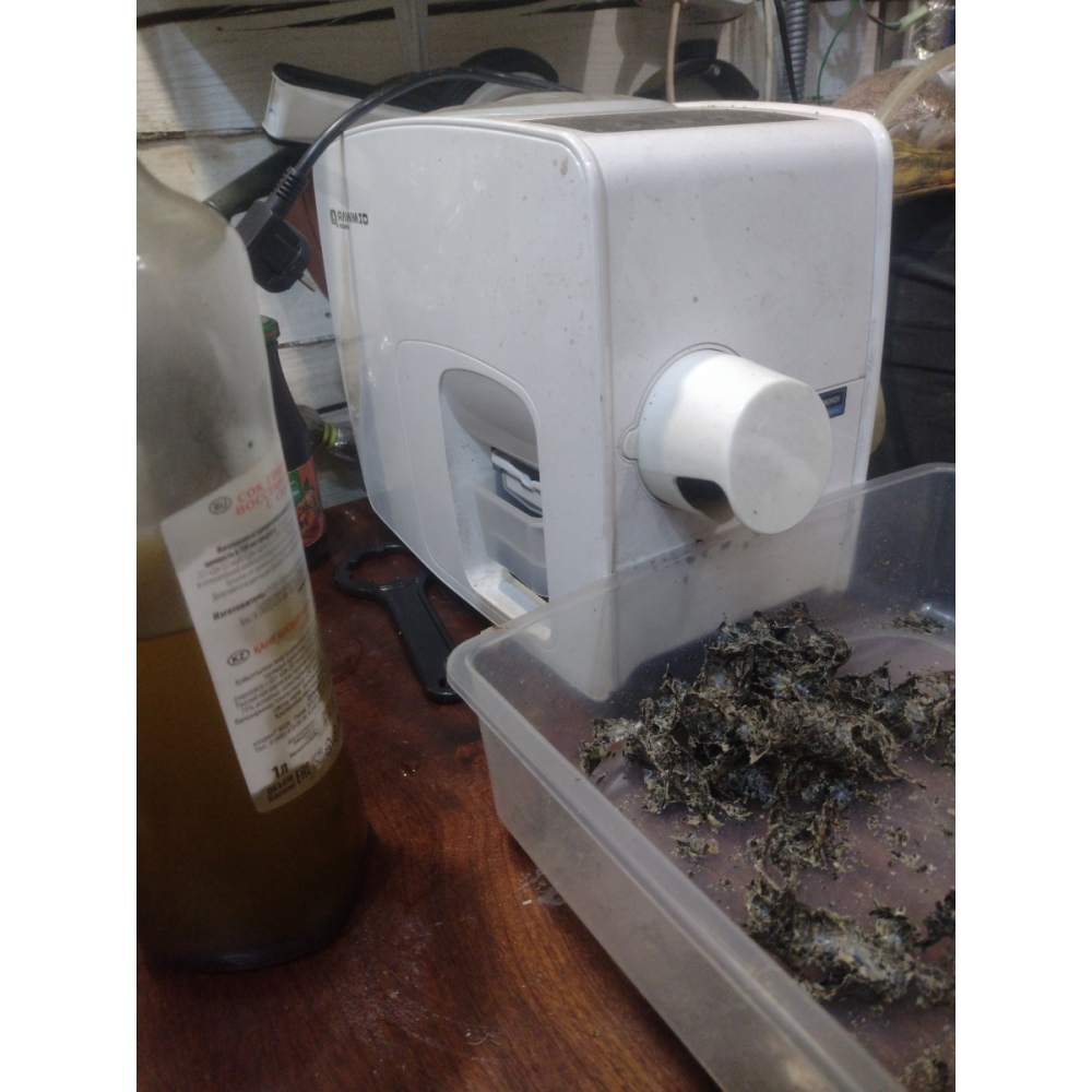 В свежевыжатом масле довольно много твёрдых примесей. Чтобы их не пришлось отфильтровывать при помощи подручных средств, в комплекте маслопресса RAWMID Modern имеется сетчатый фильтр, который ставится сверху на контейнер для масла. Таким образом, в контейнер попадает уже отфильтрованное масло.