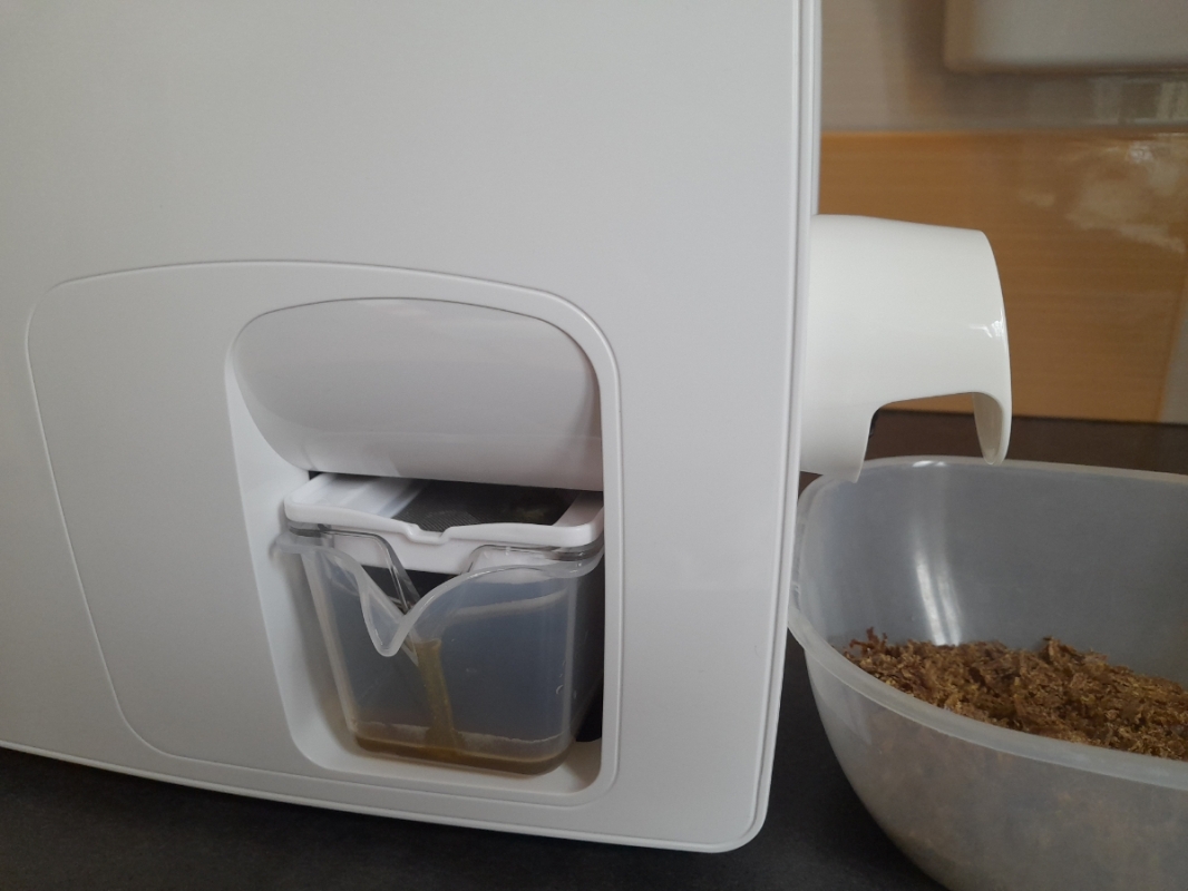 — защитный колпачок для жмыха направляет его ровно в контейнер, поэтому Вам не придётся следить, как бы жмых не заполонил весь стол. А контейнер для жмыха, в свою очередь, довольно вместительный – больше, чем у многих других моделей на рынке;
