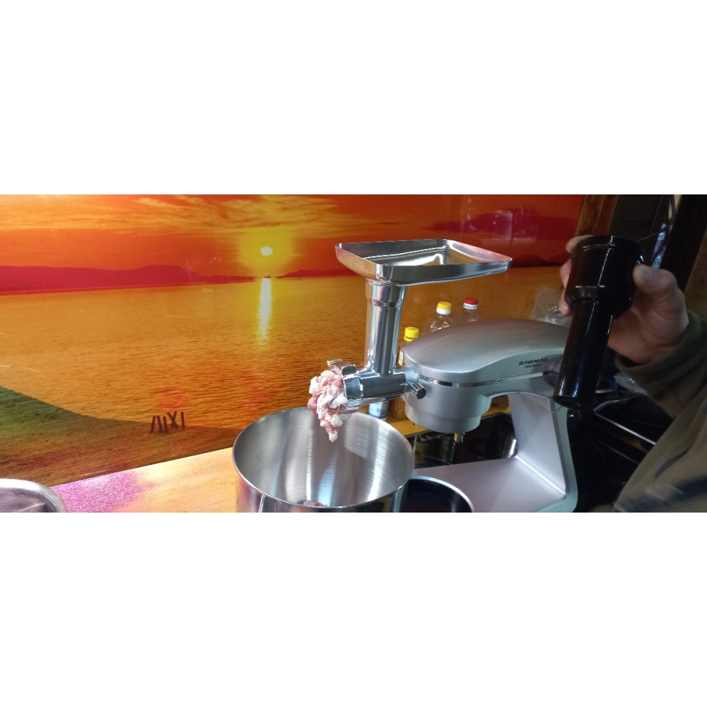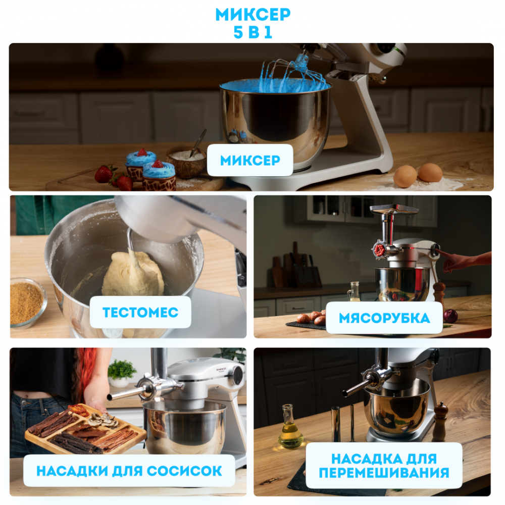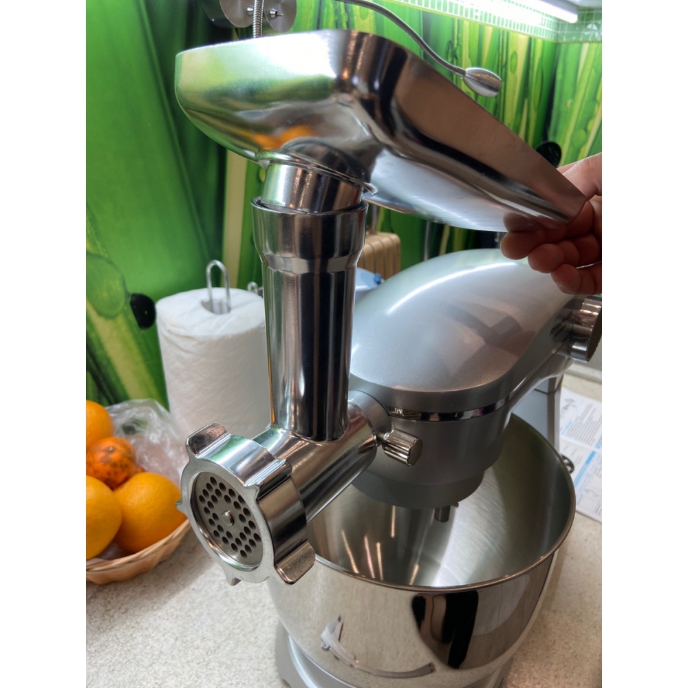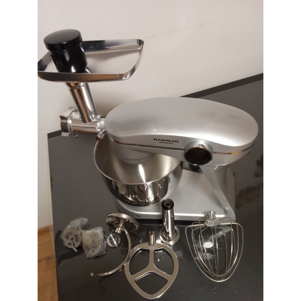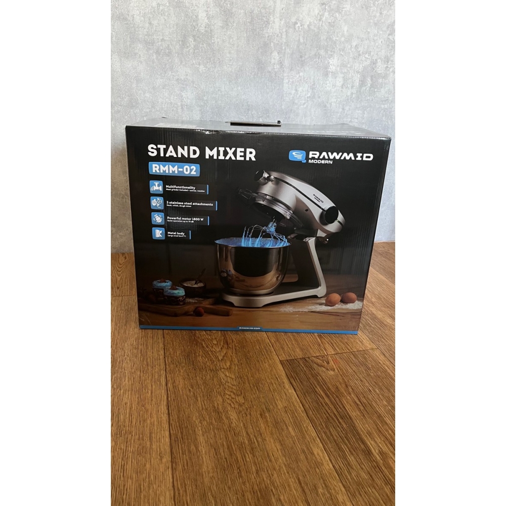 Планетарный миксер RAWMID Modern RMM-02 идеально подходит для замешивания жидкого и густого теста, соусов, кулинарных смесей и кремов. В комплект входят насадки: венчик, крюк для теста, насадка для перемешивания, мясорубка с 3 дисками для фарша, 3 насадки для колбас разного диаметра.