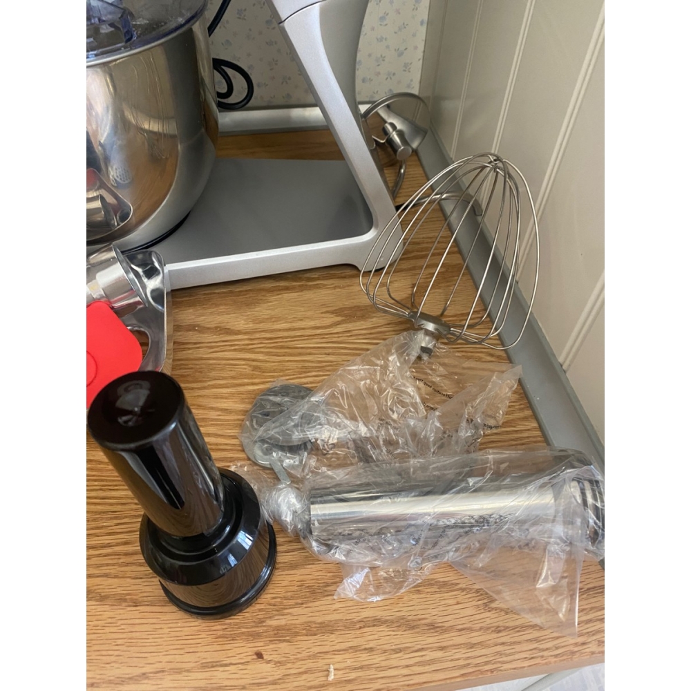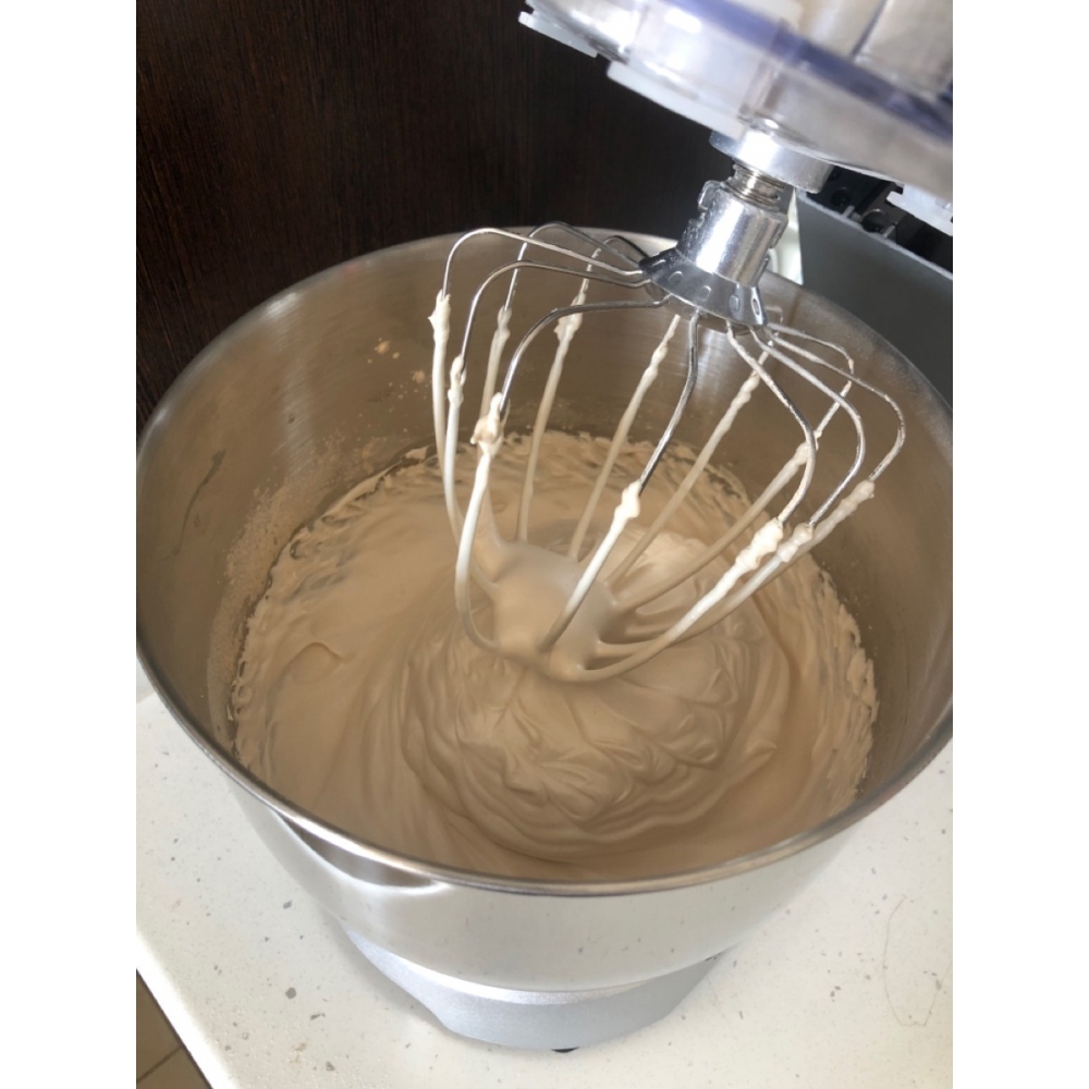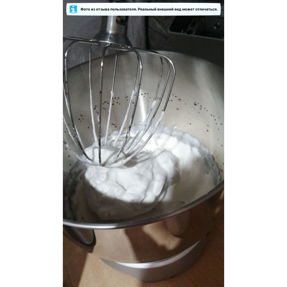 Чаша выполнена из пищевой нержавеющей стали и весит всего 500 гр, поэтому держать её легко и удобно. 7-литровый объём чаши позволяет готовить даже большие порции кремов, теста и других продуктов.