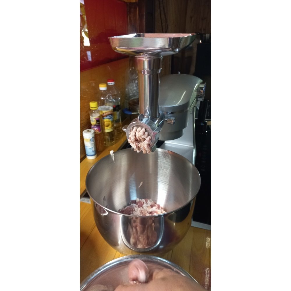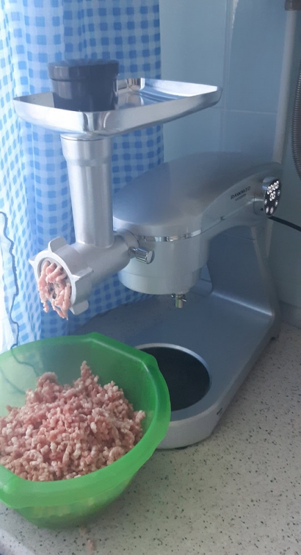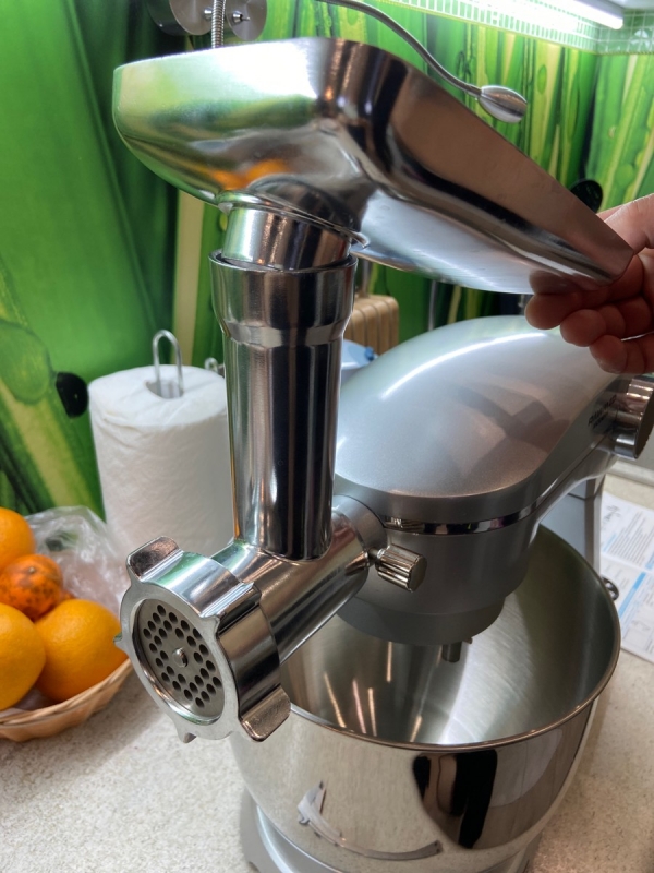 Насадка для рубки мяса Специальная стальная насадка позволяет нарезать мясо на относительно крупные кусочки.