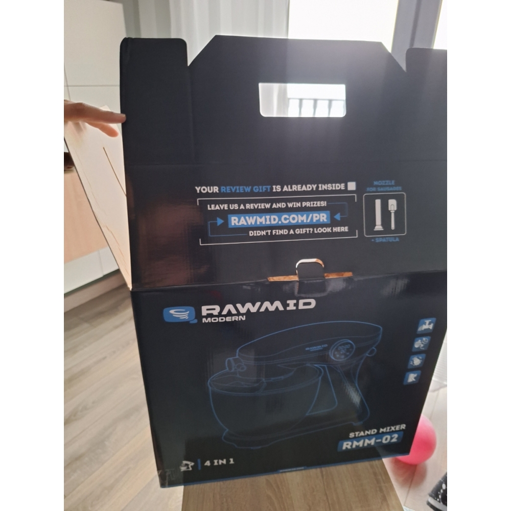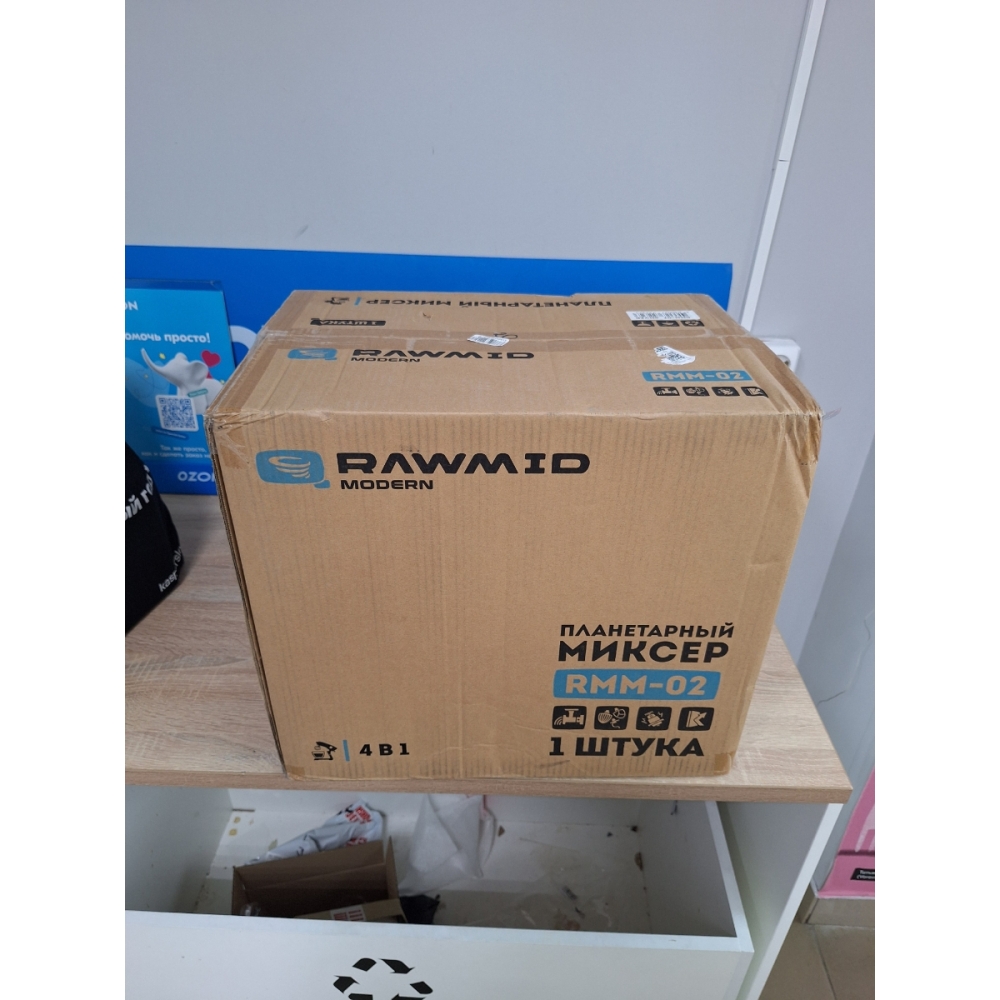 Миксер RAWMID упакован в двойную коробку. Внутренняя — подарочная, с красивым фирменным дизайном. Внешняя — обеспечивает дополнительную защиту во время перевозки.