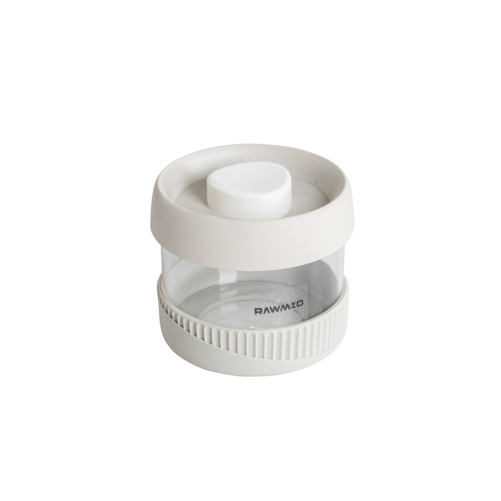 RAWMID RGC-04 — компактный вакуумный контейнер объёмом 450 мл, созданный для бережного и герметичного хранения продуктов. Он выполнен из боросиликатного стекла, которое устойчиво к перепадам температур, не мутнеет и не впитывает запахи. Материал безопасен для пищи и сохраняет внешний вид контейнера даже при ежедневном использовании.