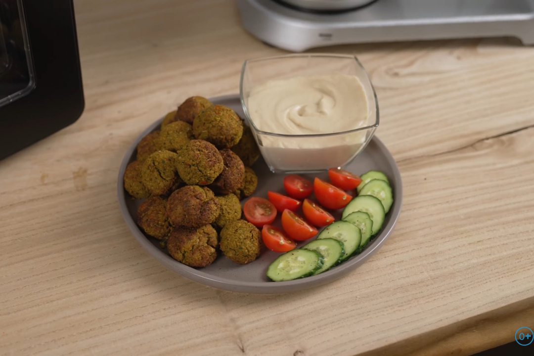 Фалафель — традиционное блюдо ближневосточной кухни, представляющее собой шарики из нута, зелени и специй. Это вегетарианский продукт, богатый белком. Обычно фалафель жарят во фритюре, но его можно приготовить в более полезном варианте — в аэрогриле. Подается с соусом тахини, овощами или в пите, что делает его универсальной закуской или основным блюдом.