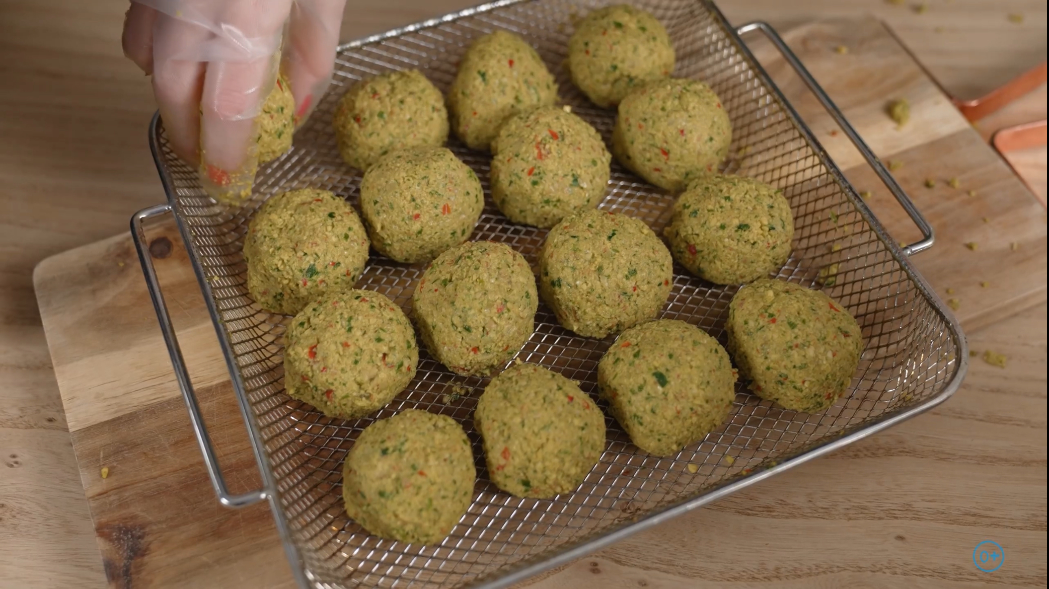 2. Запеките шарики в аэрогриле при 150°C на 20–30 минут или обжарьте в масле.