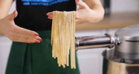 3. Разделите тесто на части, раскатайте, затем нарежьте на тальятелле. По желанию засушите.