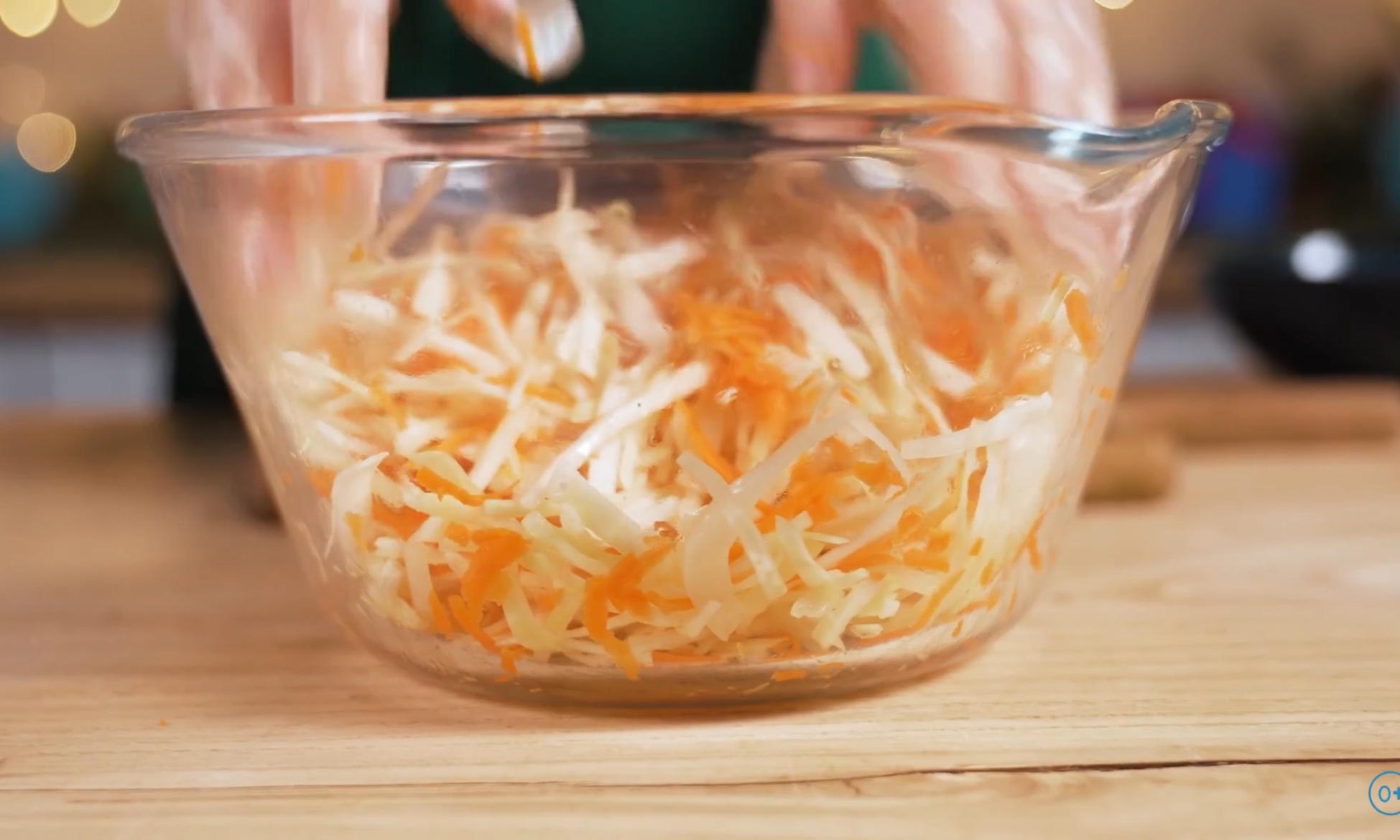 3. Смешайте капусту с морковью, добавьте соль, перец, слегка разомните.