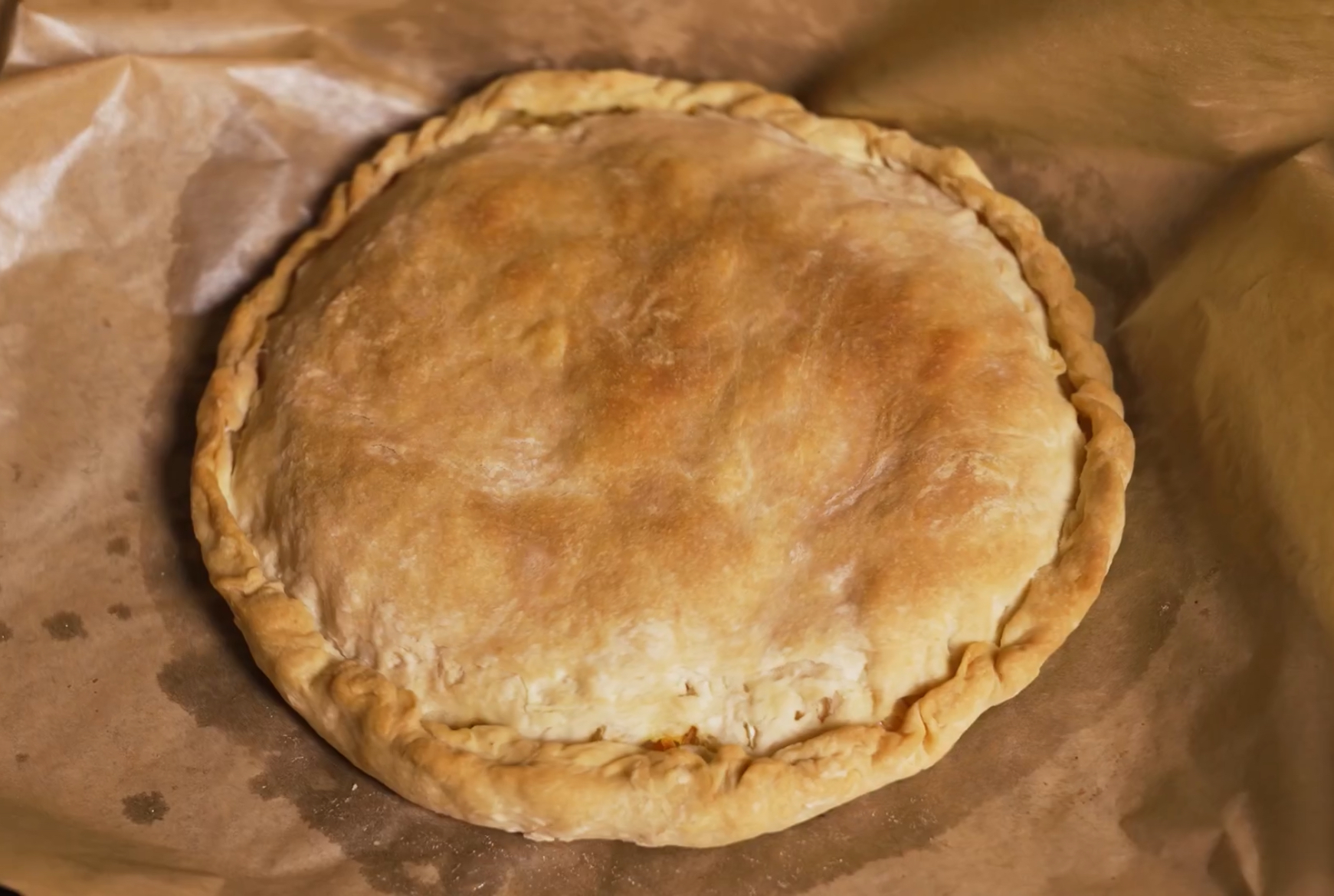 1. Смажьте верх пирога маслом или чайной заваркой для румяной корочки.