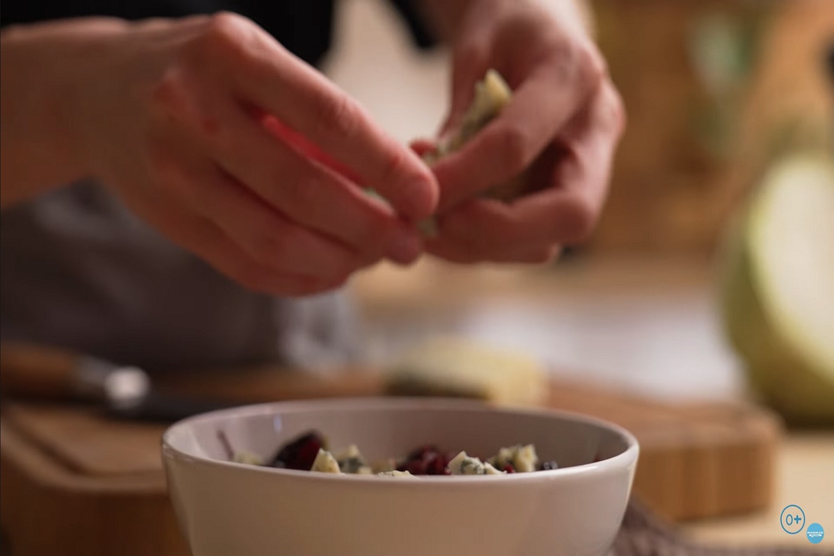 2. Сыр: руками разделите сыр с плесенью на небольшие кусочки.