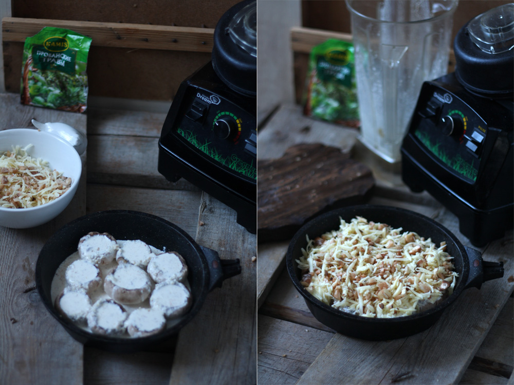 Шампиньоны в орехово-сырном соусе