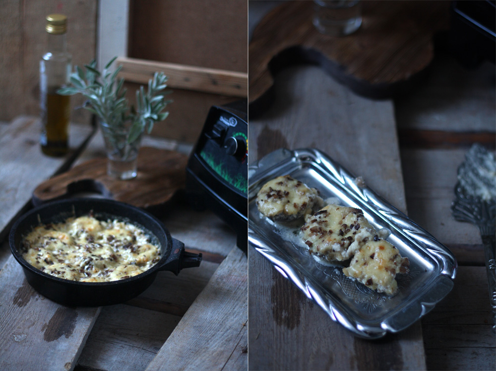 6. Грибы отправляем в духовку на 30 минут, запекаем до образования легкой золотистой корочки.