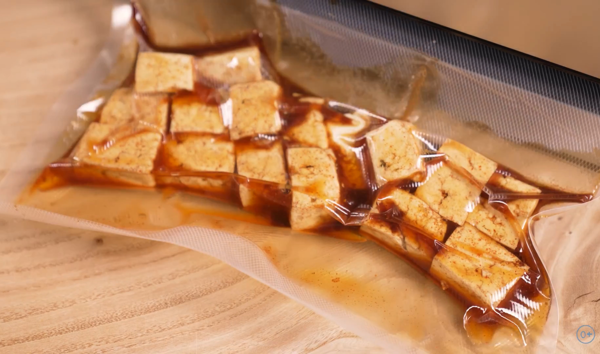 1. Нарезать тофу кубиками, замариновать в соевом соусе, оливковом масле и специях.