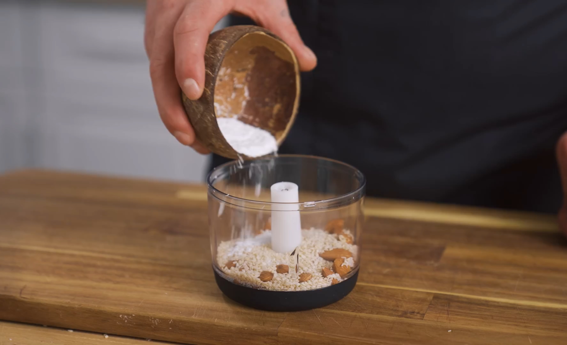 1. Измельчите миндаль, кунжут и кокос в муку.