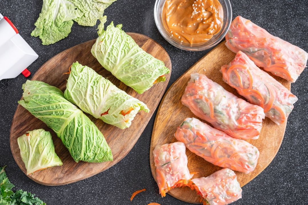 Рецепт паназиатских спринг роллов с арахисовым соусом.