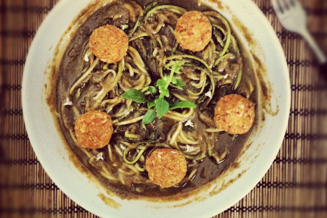 Льняной "фалафель" можно подать к салату, кушать просто так, брать с собой на учебу или работу, как полезный снэк. Но лучше всего он сочетается с сыроедческой цуккини-пастой под томатным соусом (нужно просто добавить в блюдо несколько шариков). А если вам хочется настоящий "восточный обед" в сыроедческом стиле - сделайте к нашему "фалафелю" сыроедческий вариант "табуле"-салата. Или, например, соус из проростков зеленой гречки - очень вкусно макать в него шарики и заедать свежей зеленью.