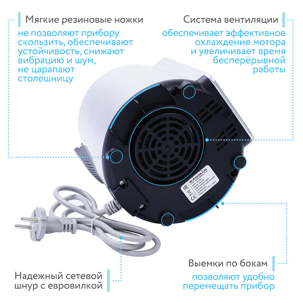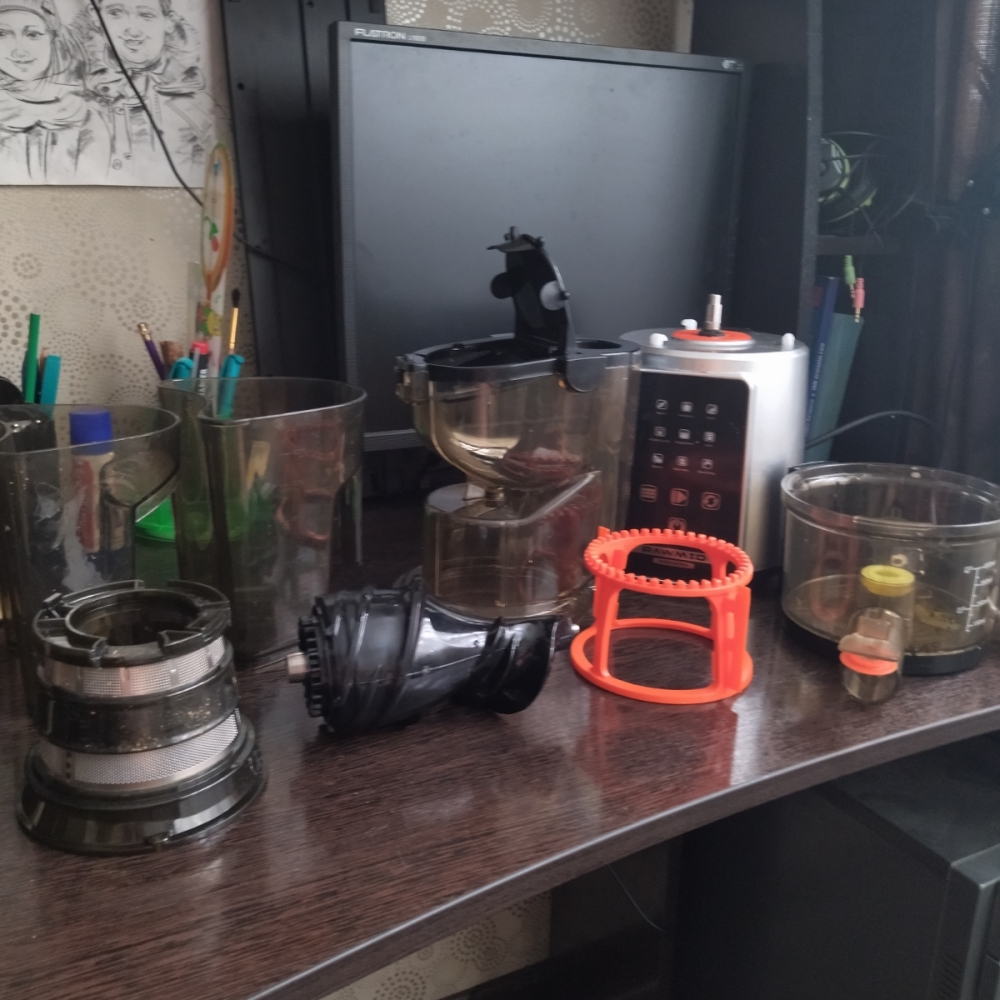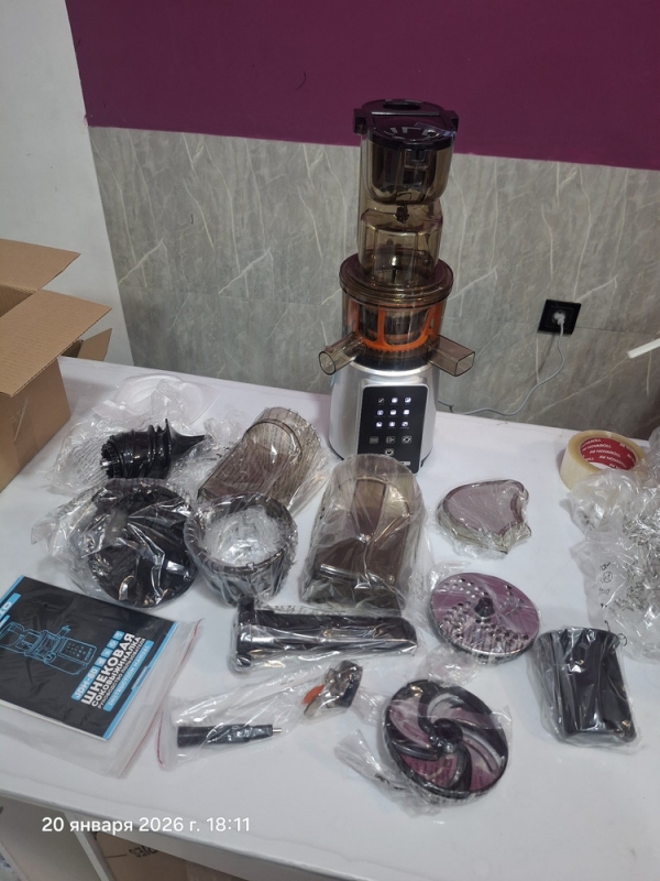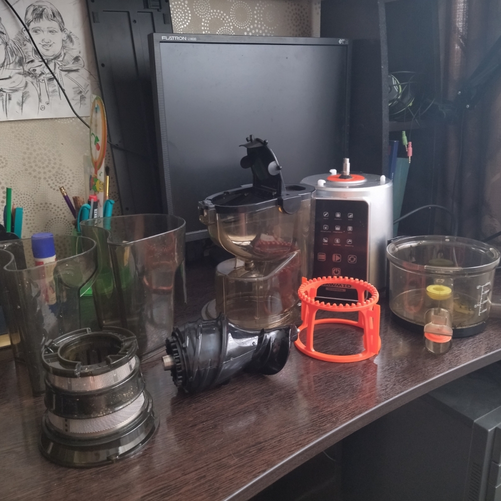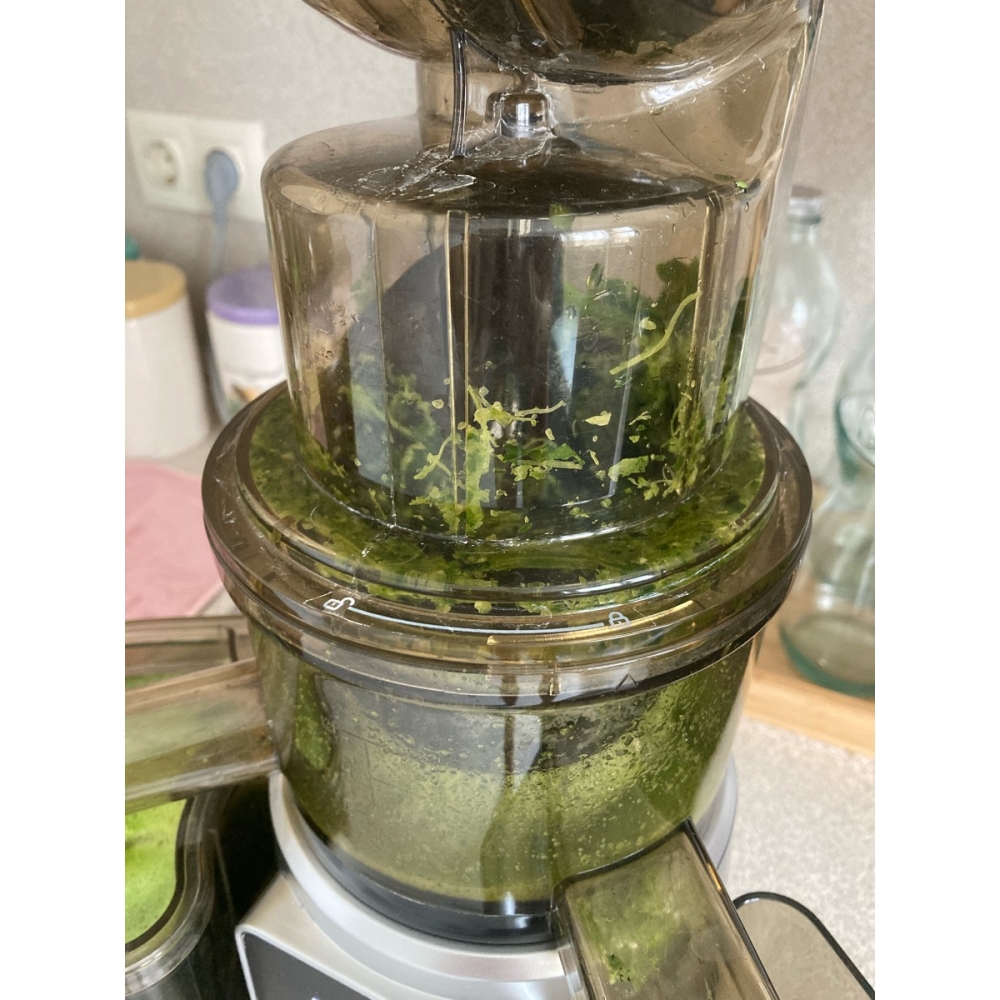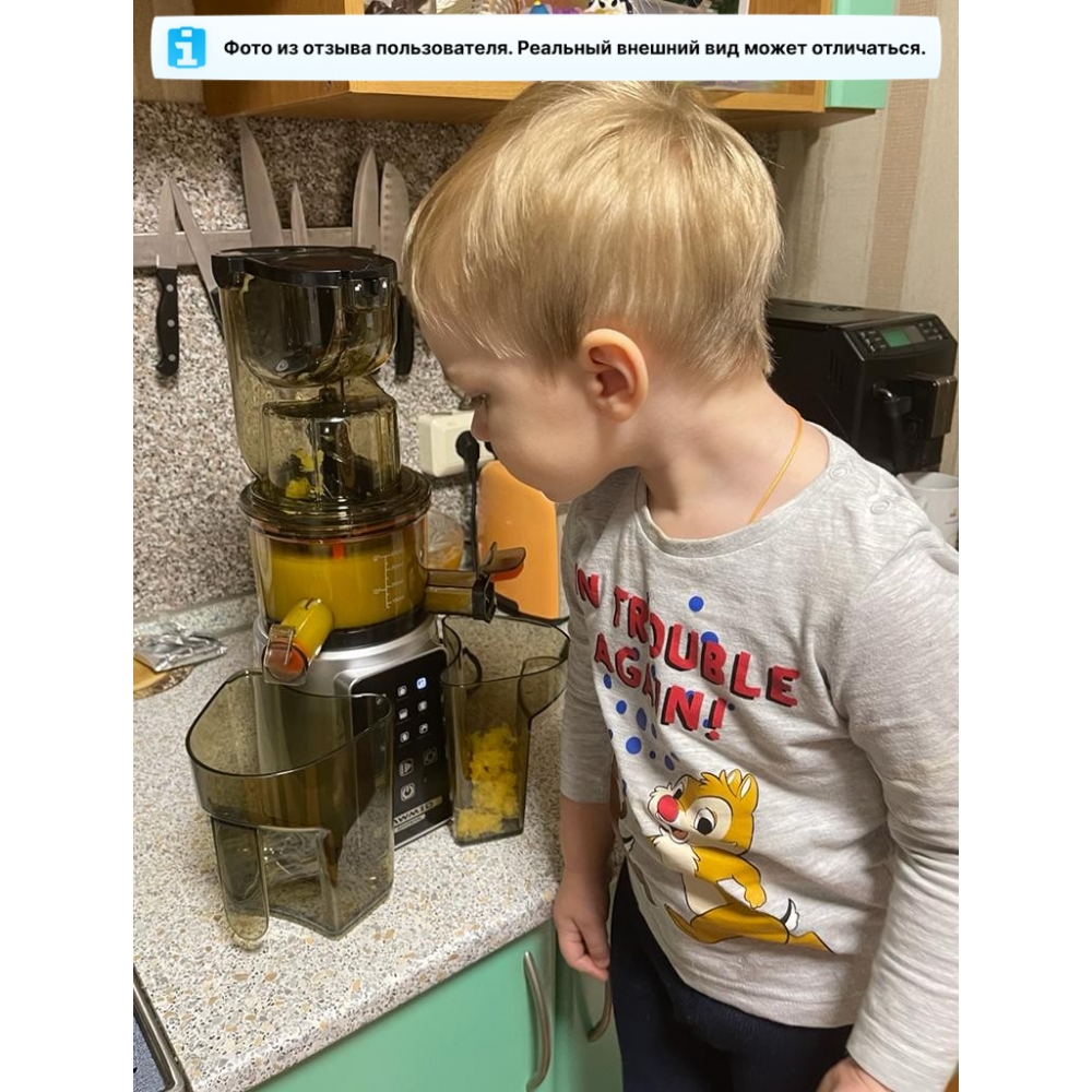 Все детали, контактирующие с продуктами, изготовлены из высококачественных и экологически безопасных материалов. Шнек, корзина и контейнеры сделаны из прочного и экологичного тритана, который не содержат бисфенола А и других опасных соединений.