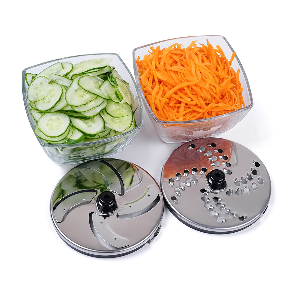 В комплекте Dream Modern JDM-80 имеются две насадки-тёрки для шинковки продуктов и их нарезки слайсами (ломтиками). Улучшенные металлические диски второго поколения отличаются более качественной заточкой и повышенной производительностью – за 1 оборот диска обработка продукта происходит дважды.